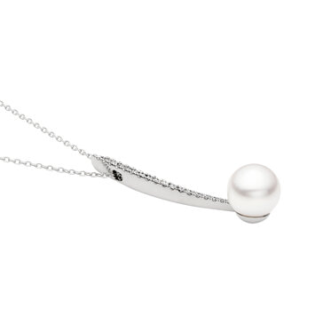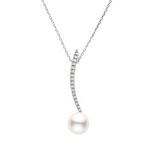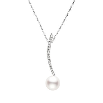 大粒のアコヤパール の量感とダイヤモンドの繊細なラインとのコントラストが、ドレッシーな中にもモダンさを感じさせるネックレス。
