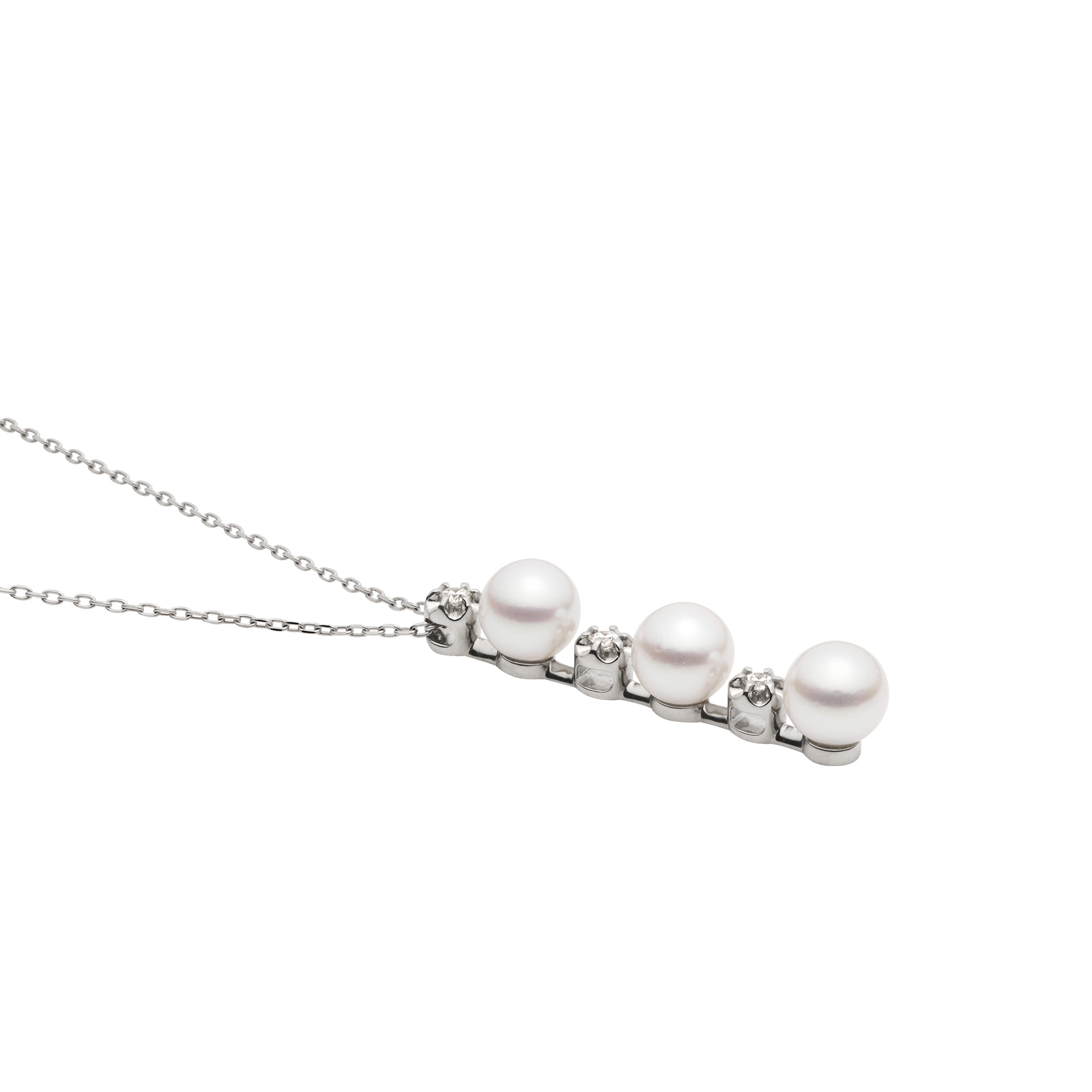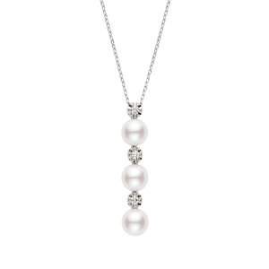 艶やかな光沢のアコヤパールとダイヤモンドを交互に連ねたネックレス。