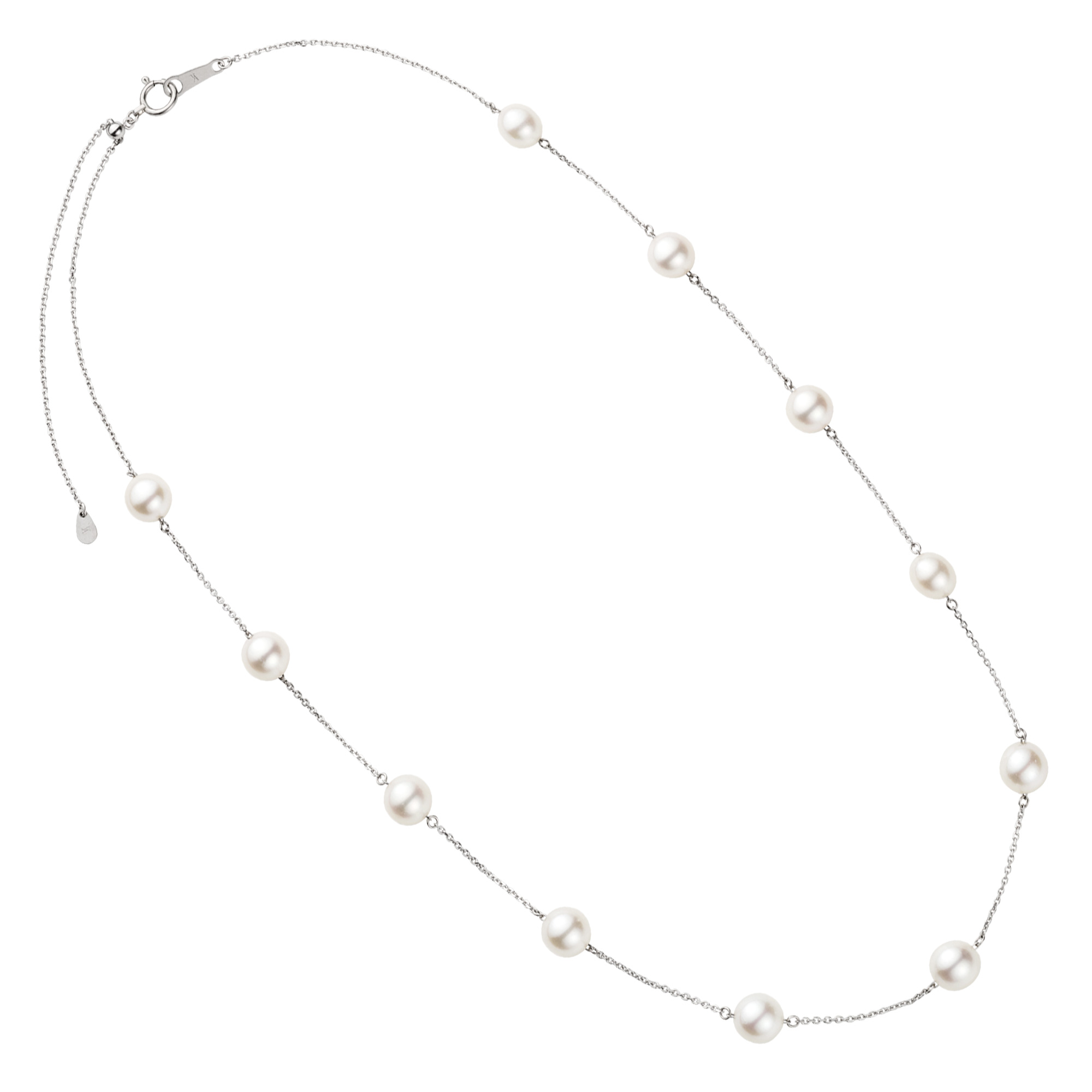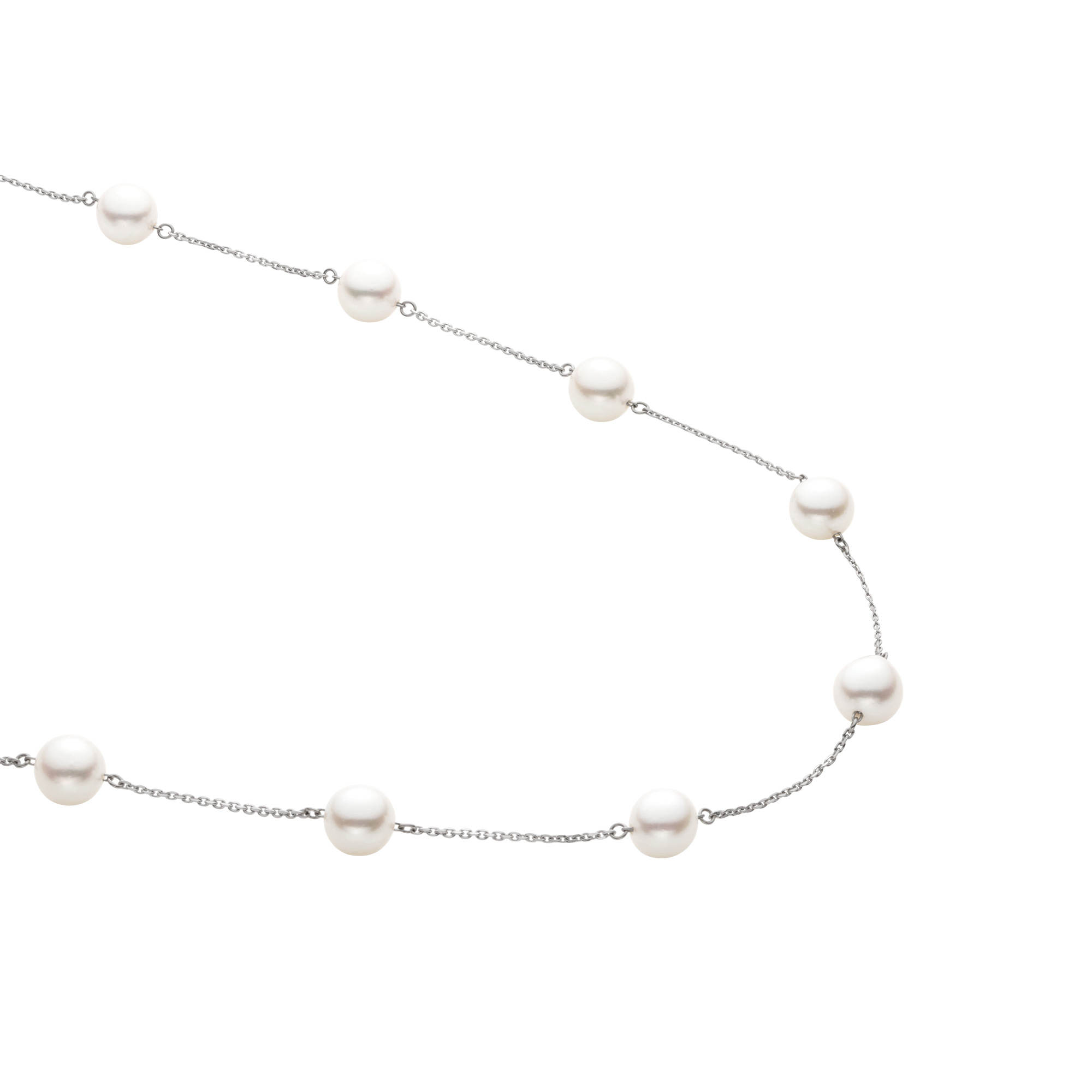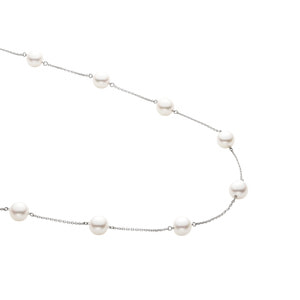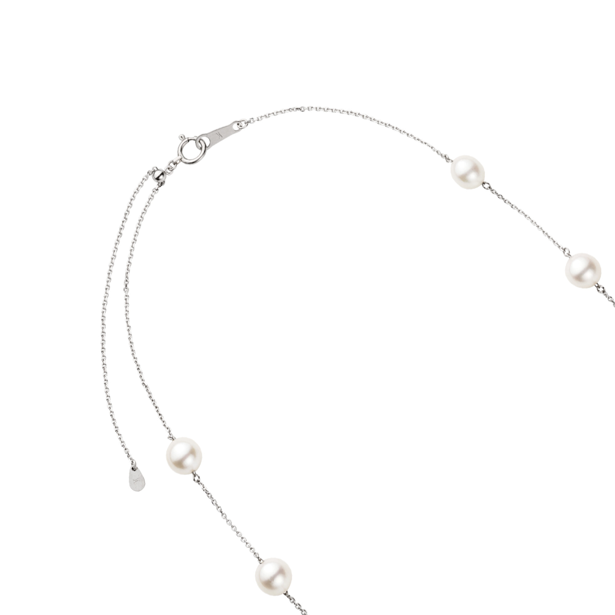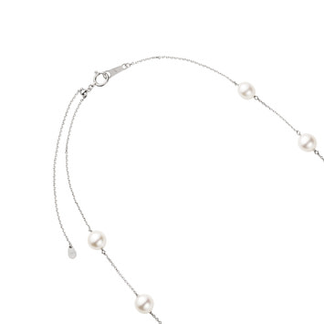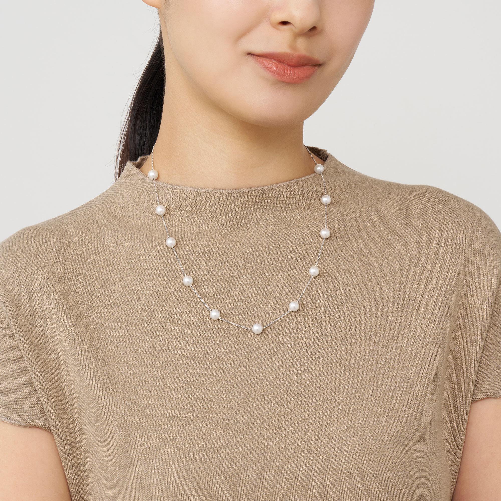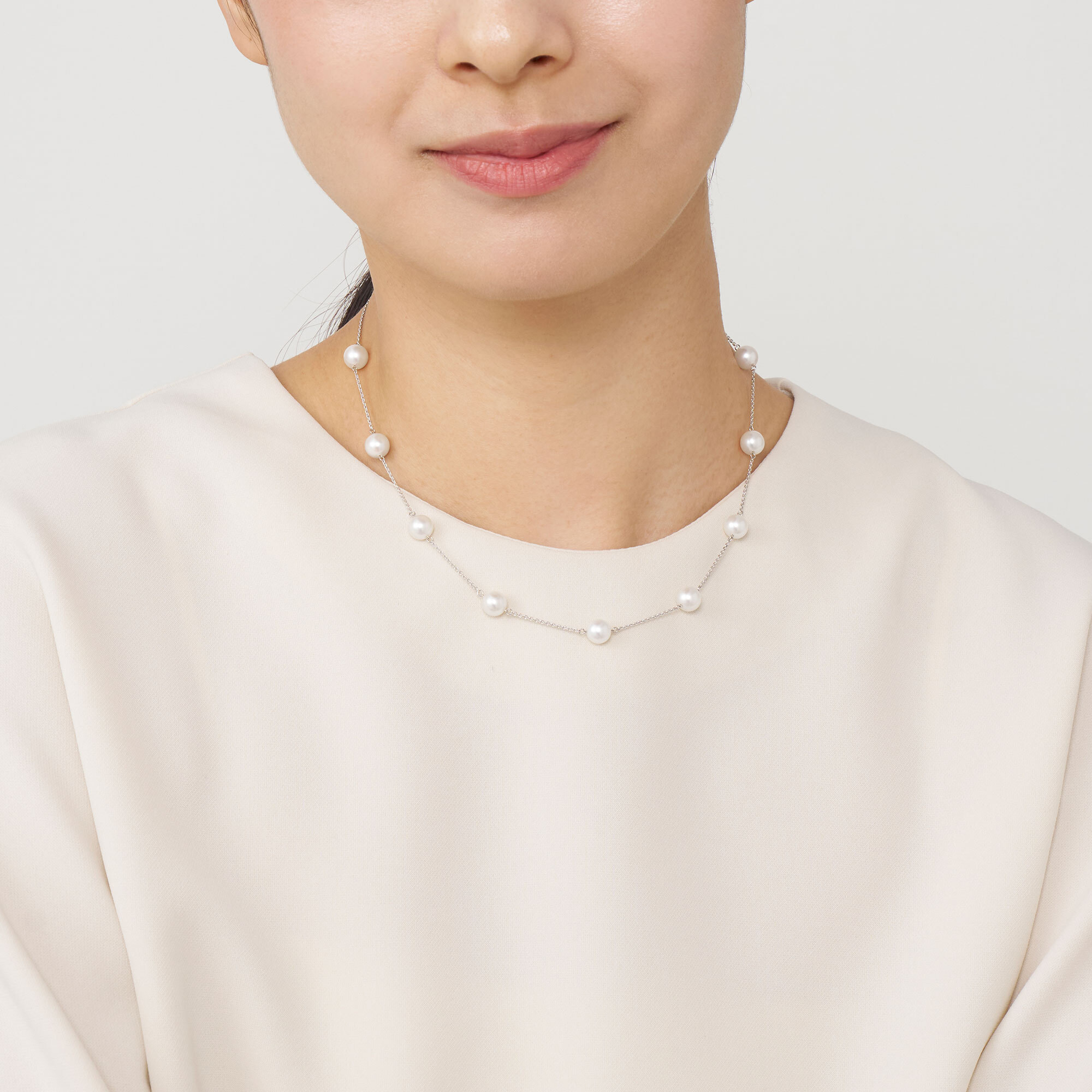 粒感のあるアコヤパールをプラチナのチェーンにリズミカルに配したステーションタイプのネックレス。