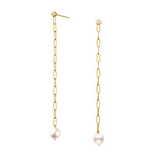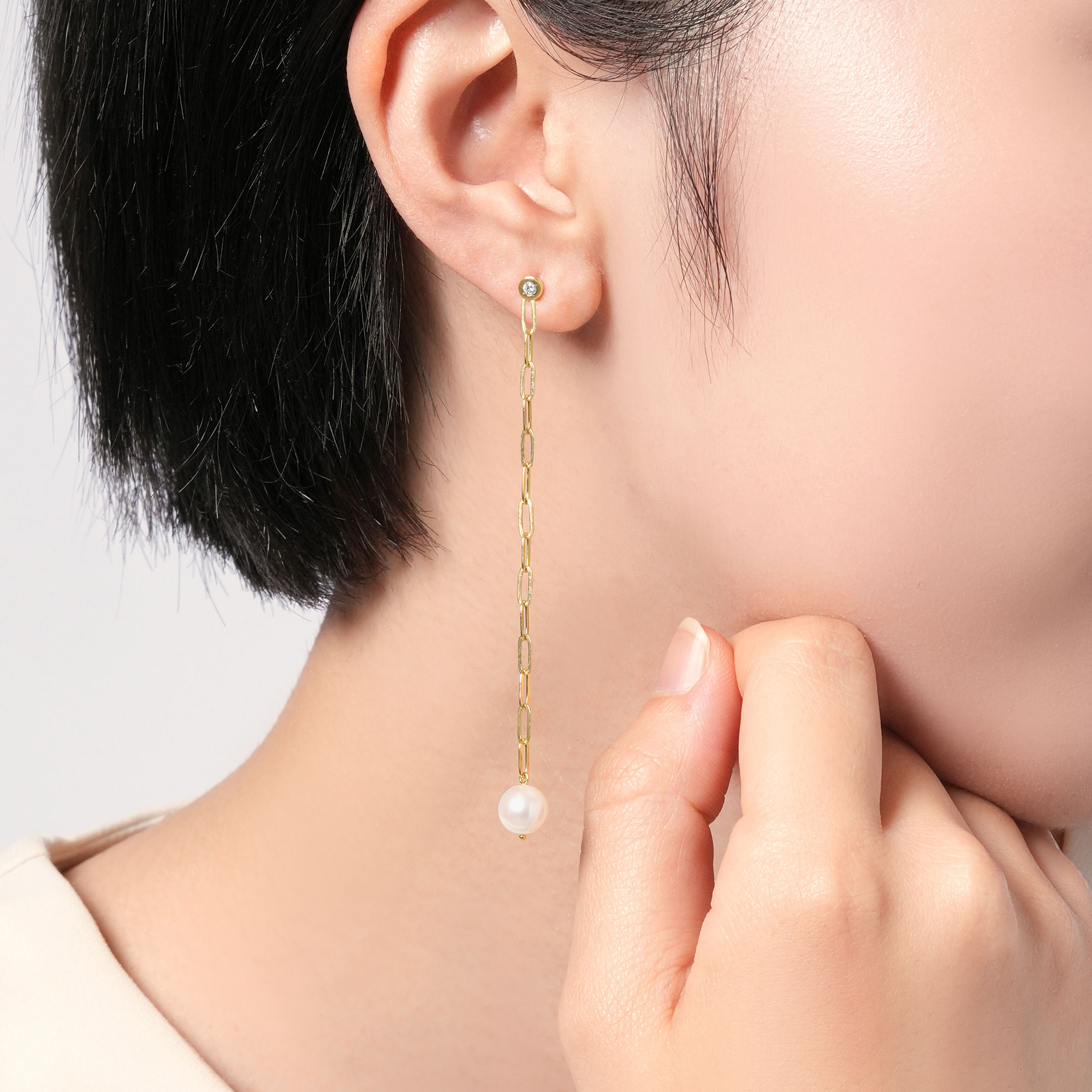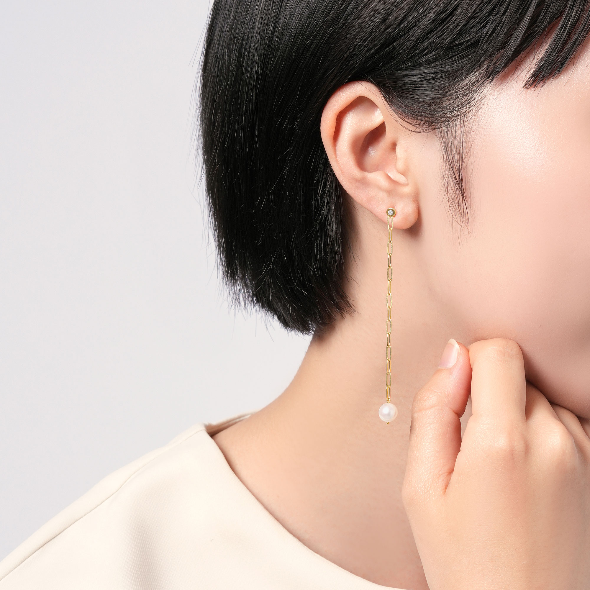 ボリューム感と抜け感がモダンな印象のチェーンに、アコヤパールを一粒あしらったスタイリッシュなピアス。