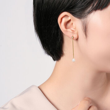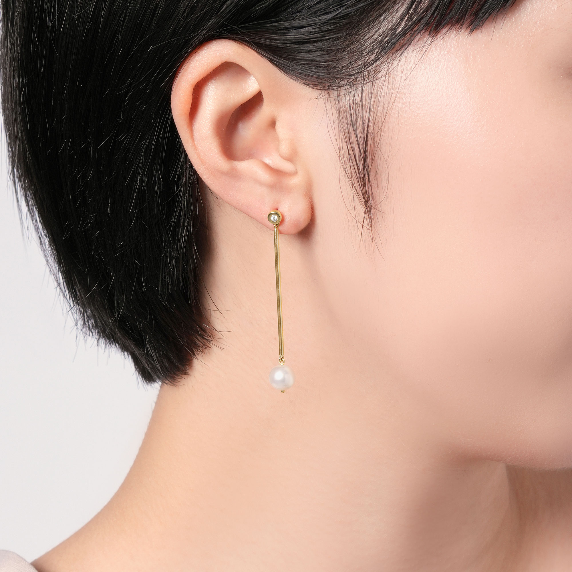 シンプルで幾何学的なシルエットが与える無機質なイメージに、アコヤパールの柔らかな光沢で優しさがプラスされています。