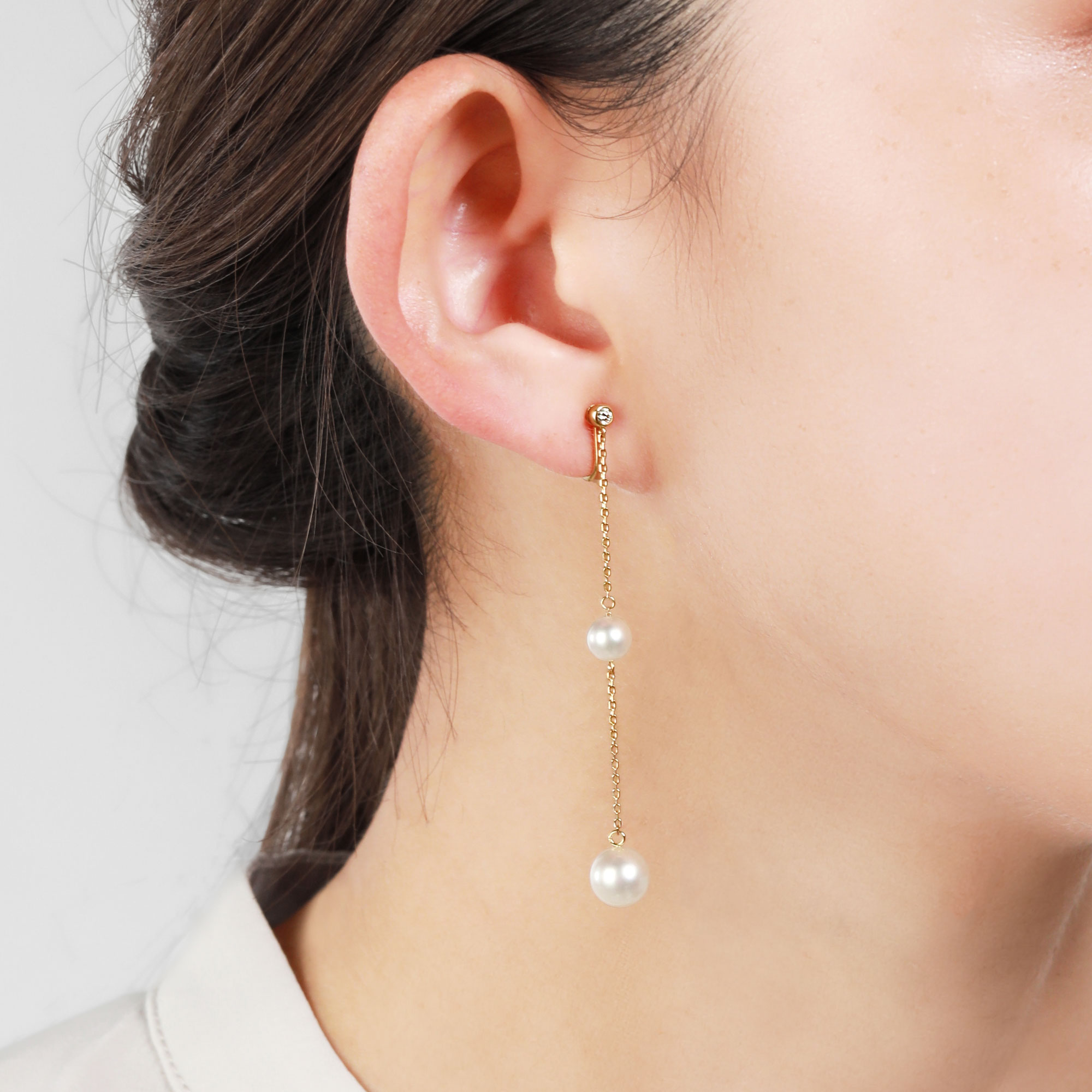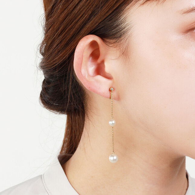 カジュアル感あるデザインでありながら、パールの柔らかな質感と優美な光沢が感じられるところが魅力のイヤリングです。