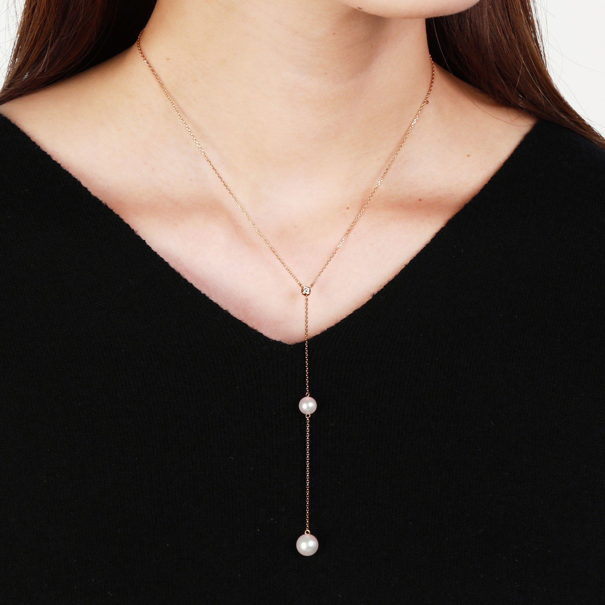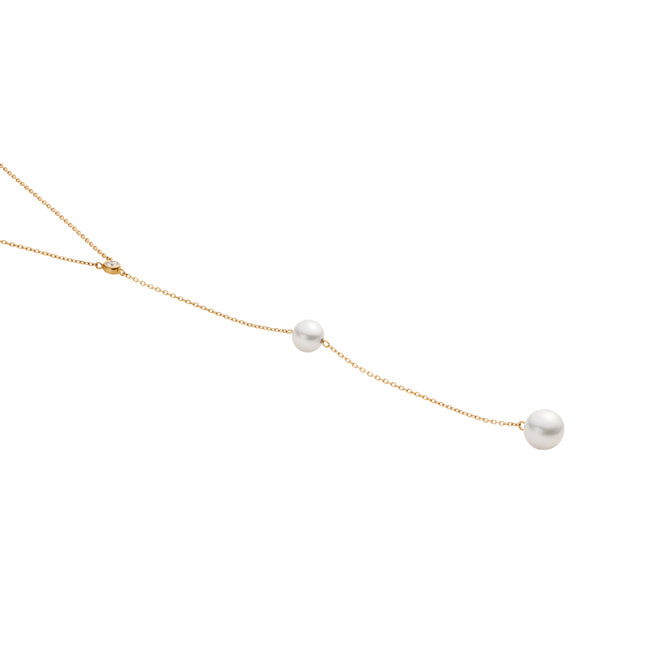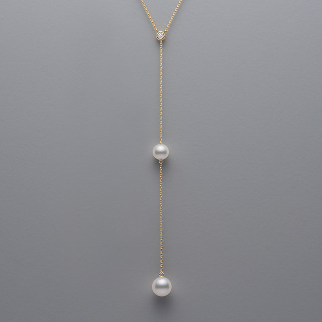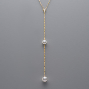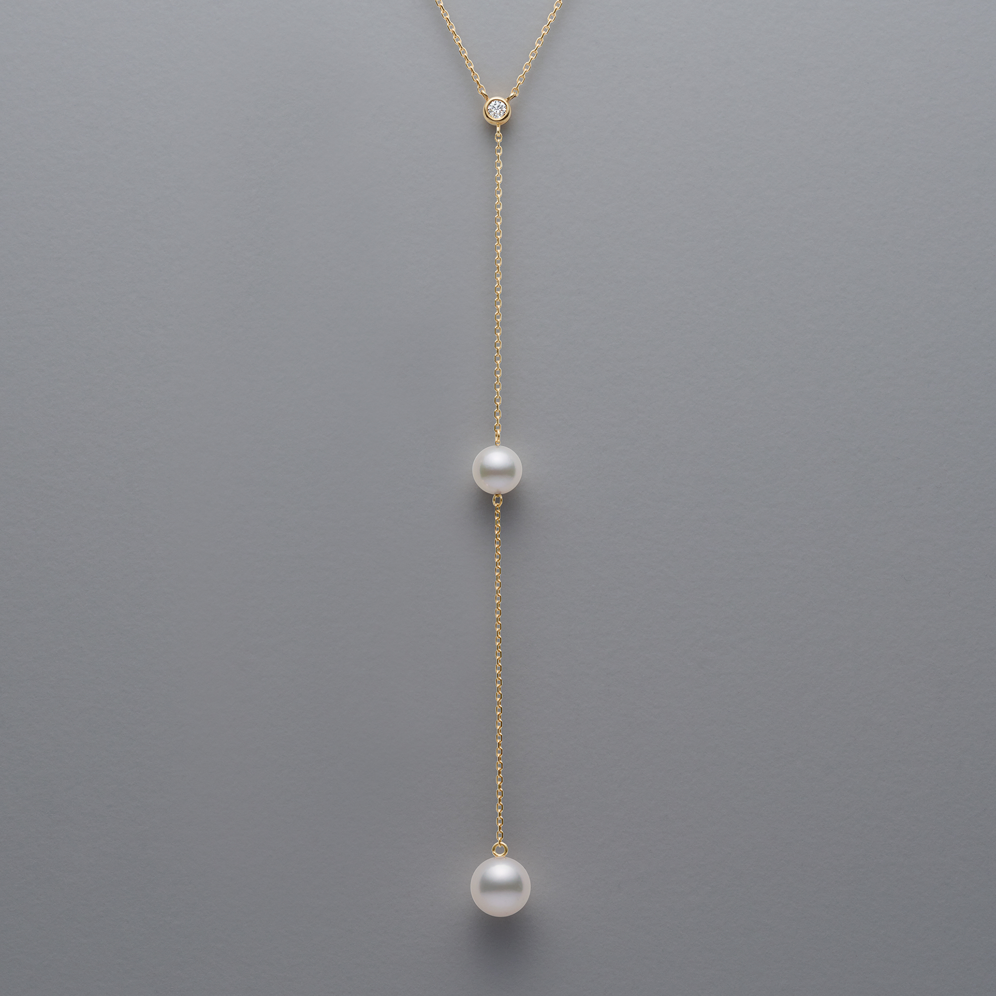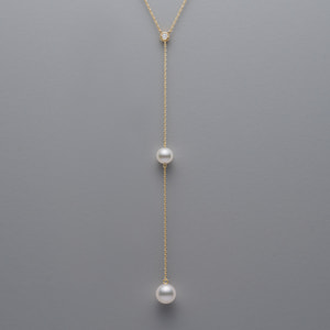 ゴールドのチェーンにアコヤパールとダイヤモンドをリズミカルに配したネックレス。