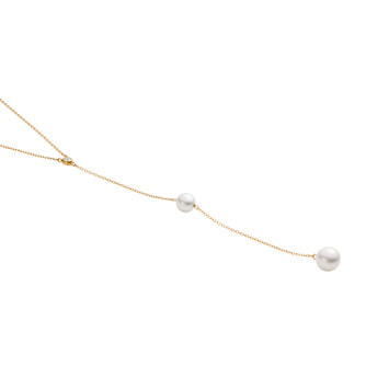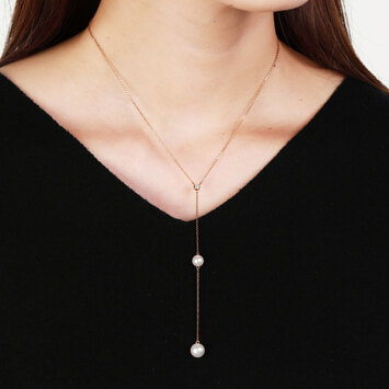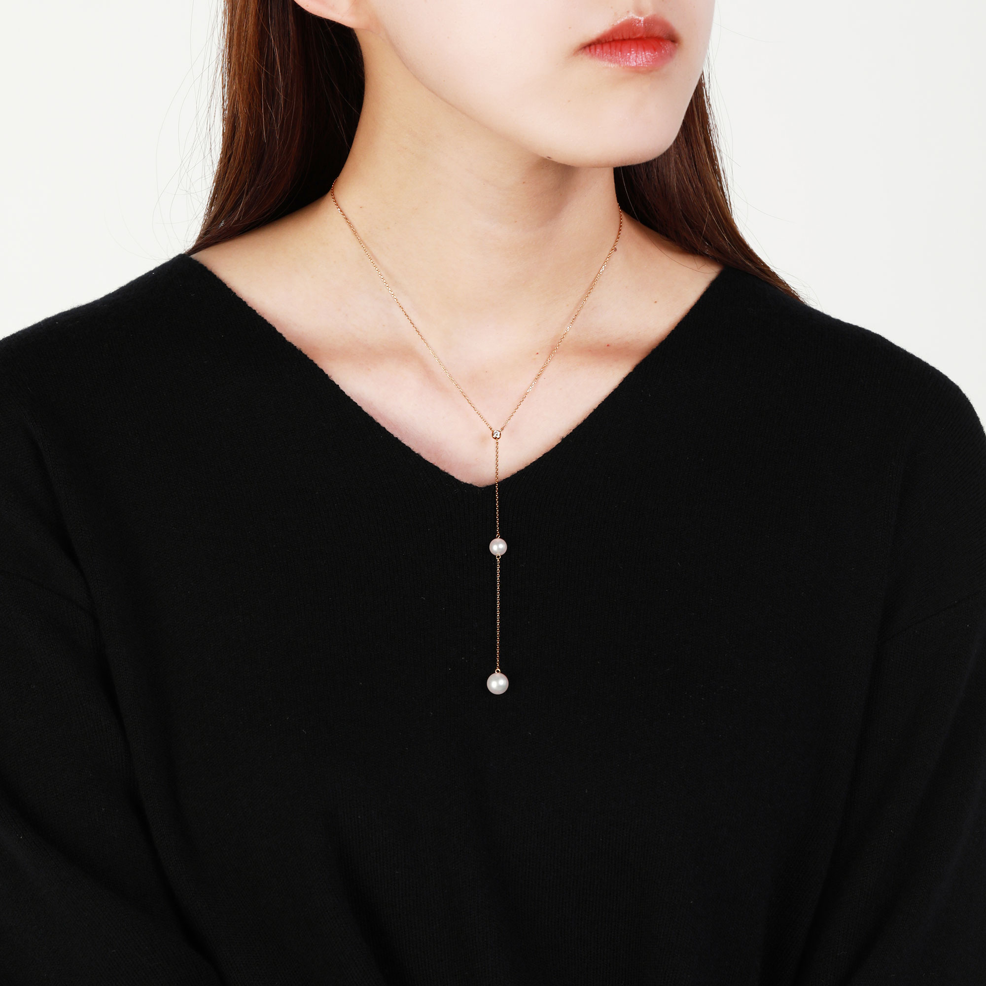 カジュアル感あるデザインでありながら、パールの柔らかな質感と優美な光沢が感じられるところが魅力のネックレスです。