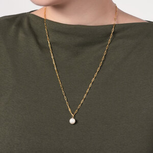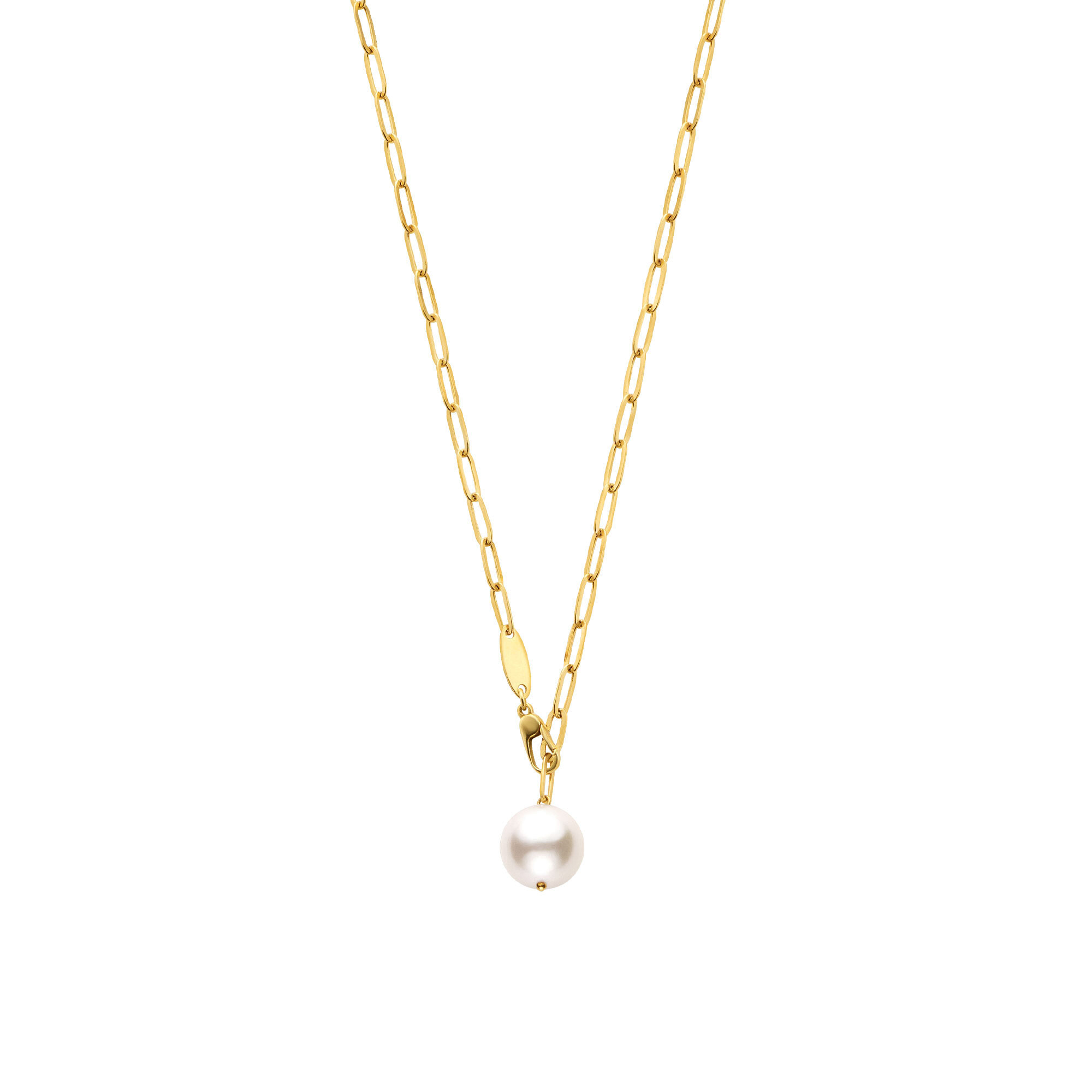 ボリューム感と抜け感がモダンな印象のチェーンに、アコヤパールを一粒あしらったスタイリッシュなネックレス。