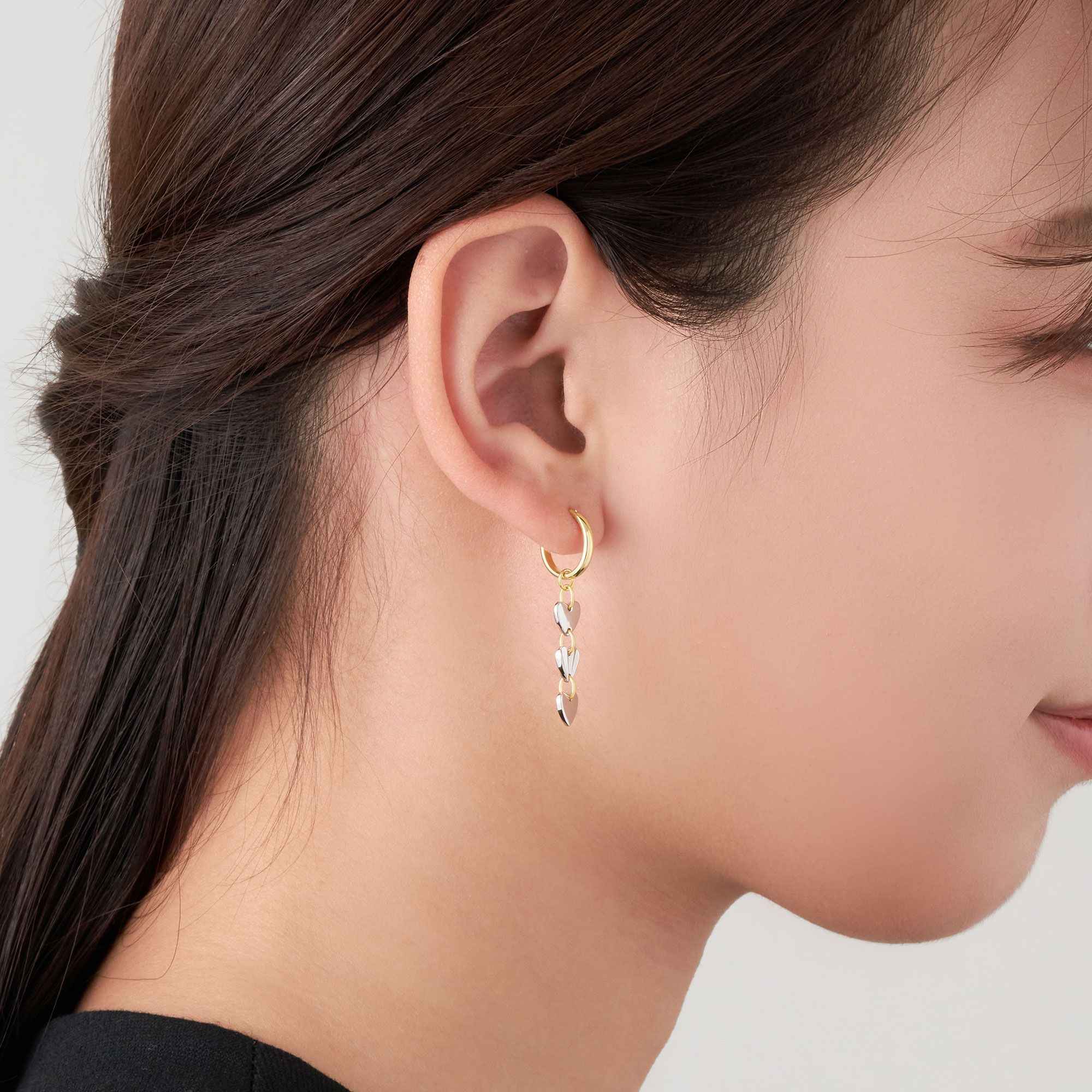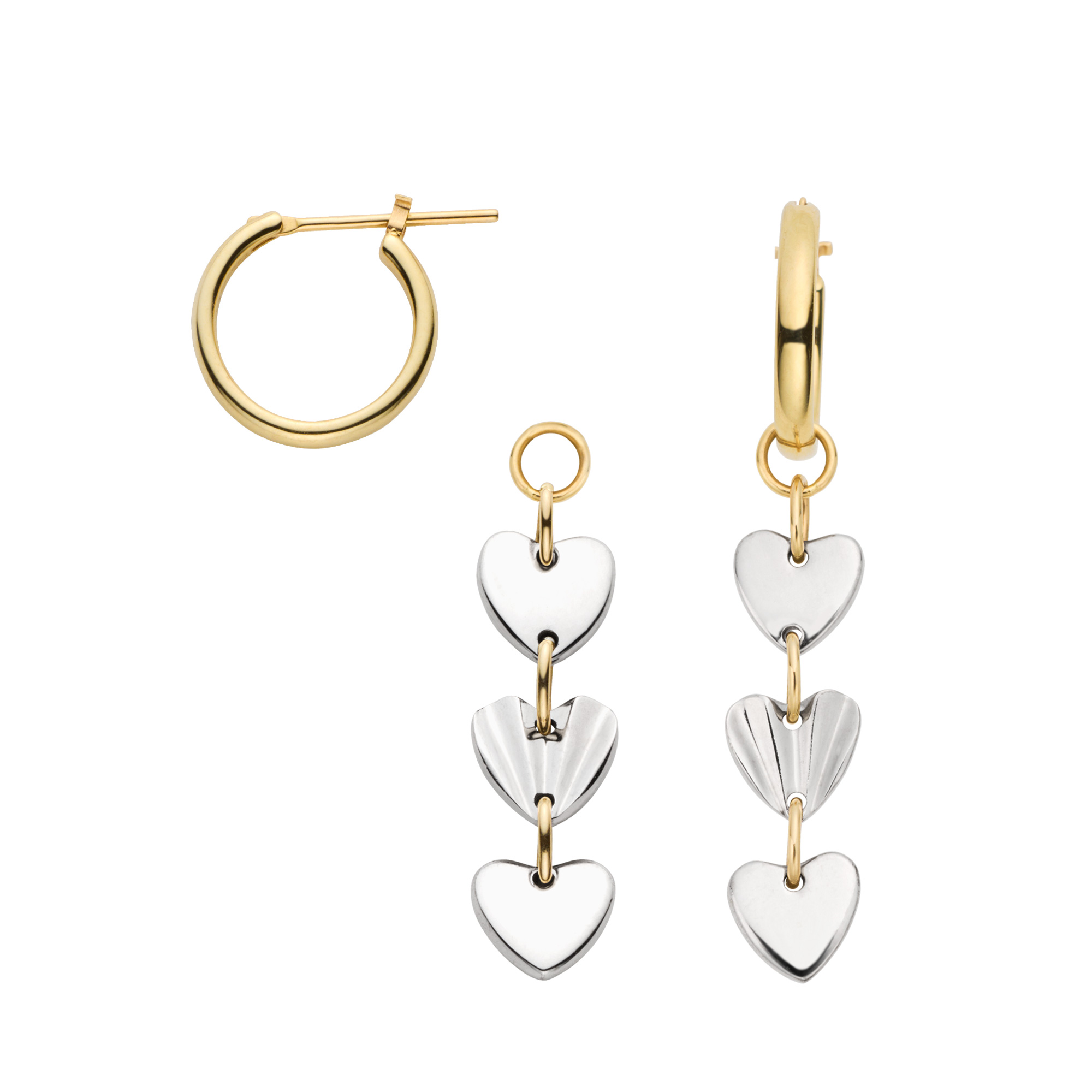 縦に連なる3つのハートがポップで愛らしいフープピアス。