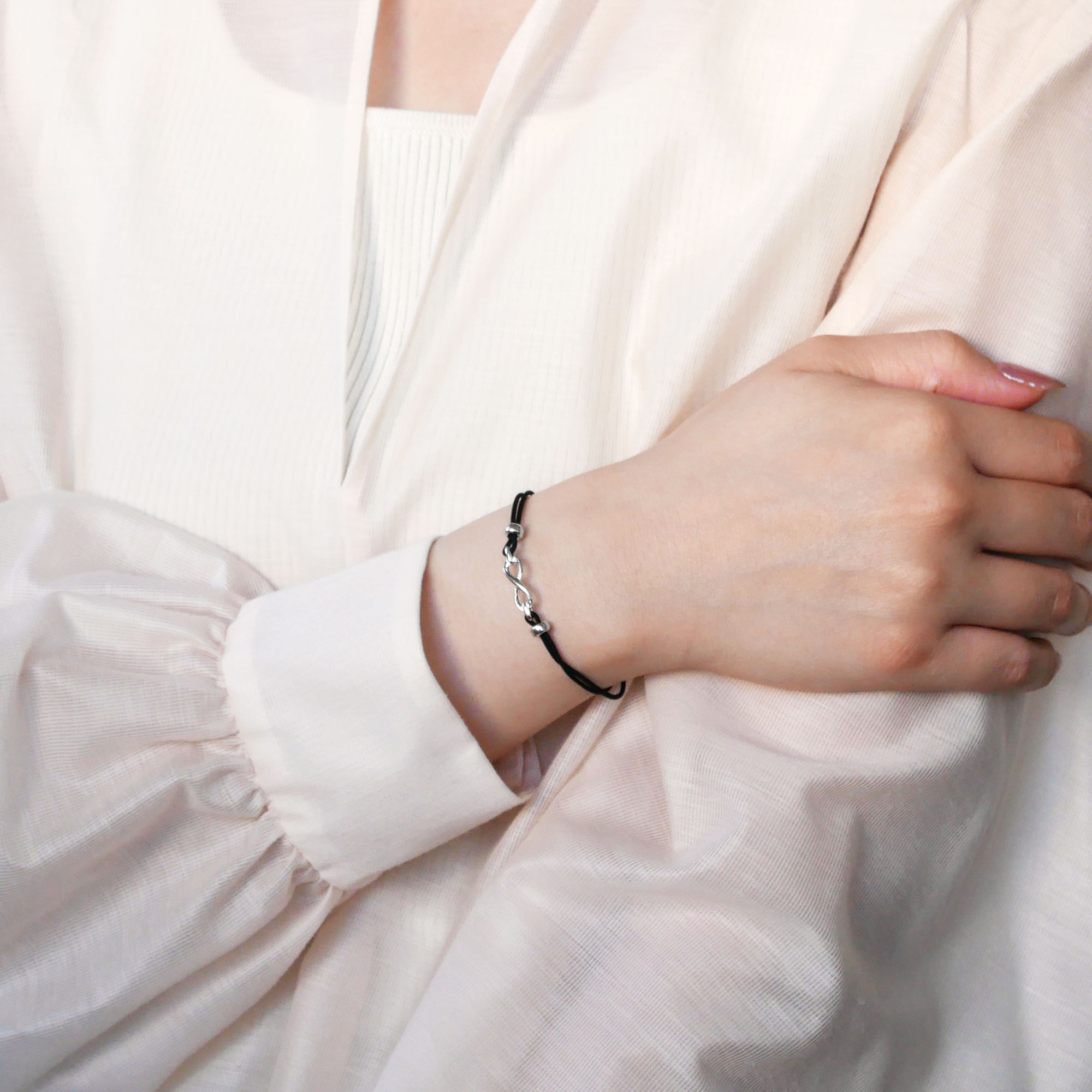 地金の輝きとコードのやわらかい質感とのコントラストが美しいベーシックなブレスレット。