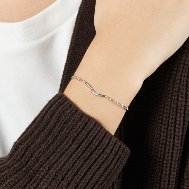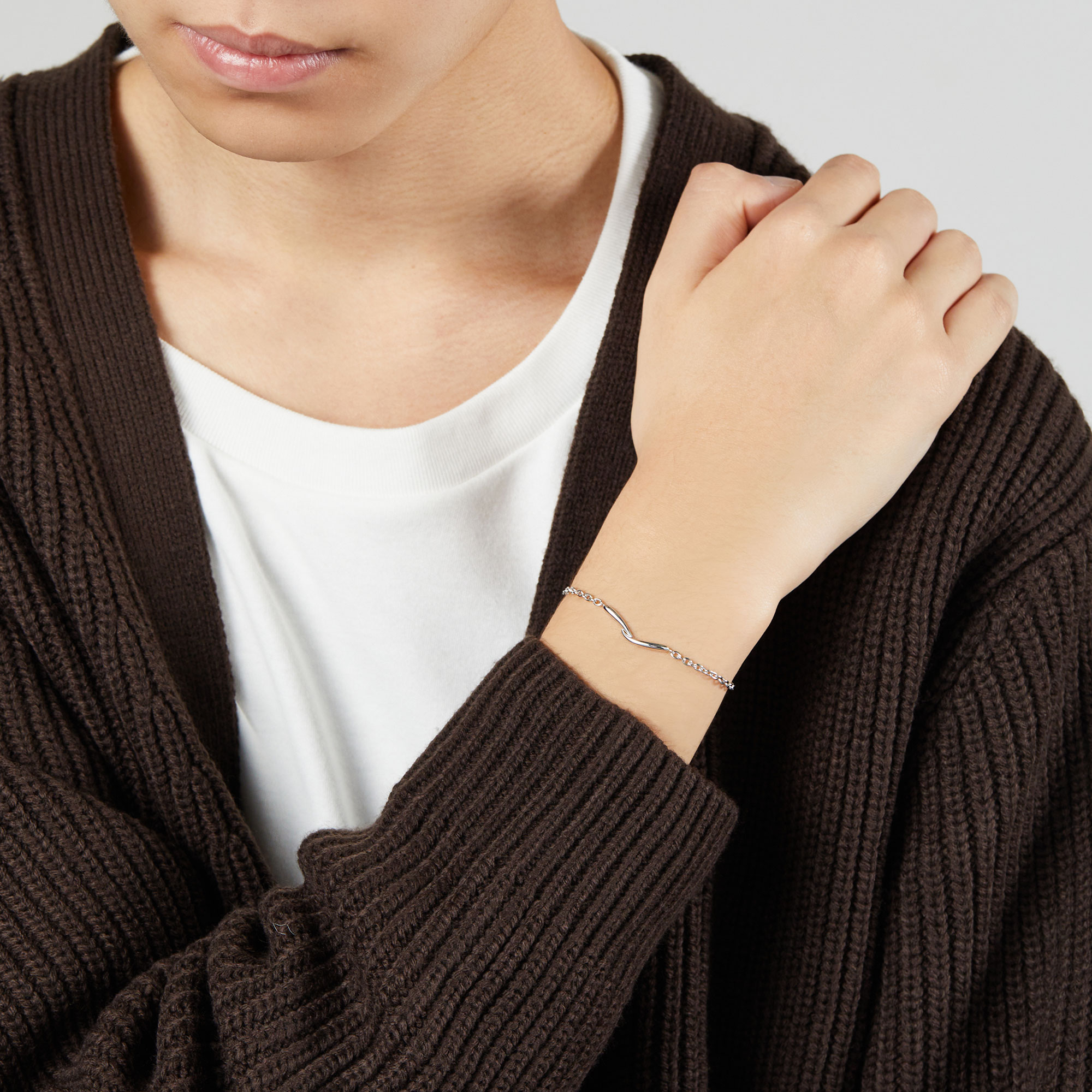 美しいカーブを描く2つのラインが手をつないだかのようなフォルムのブレスレット。
