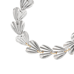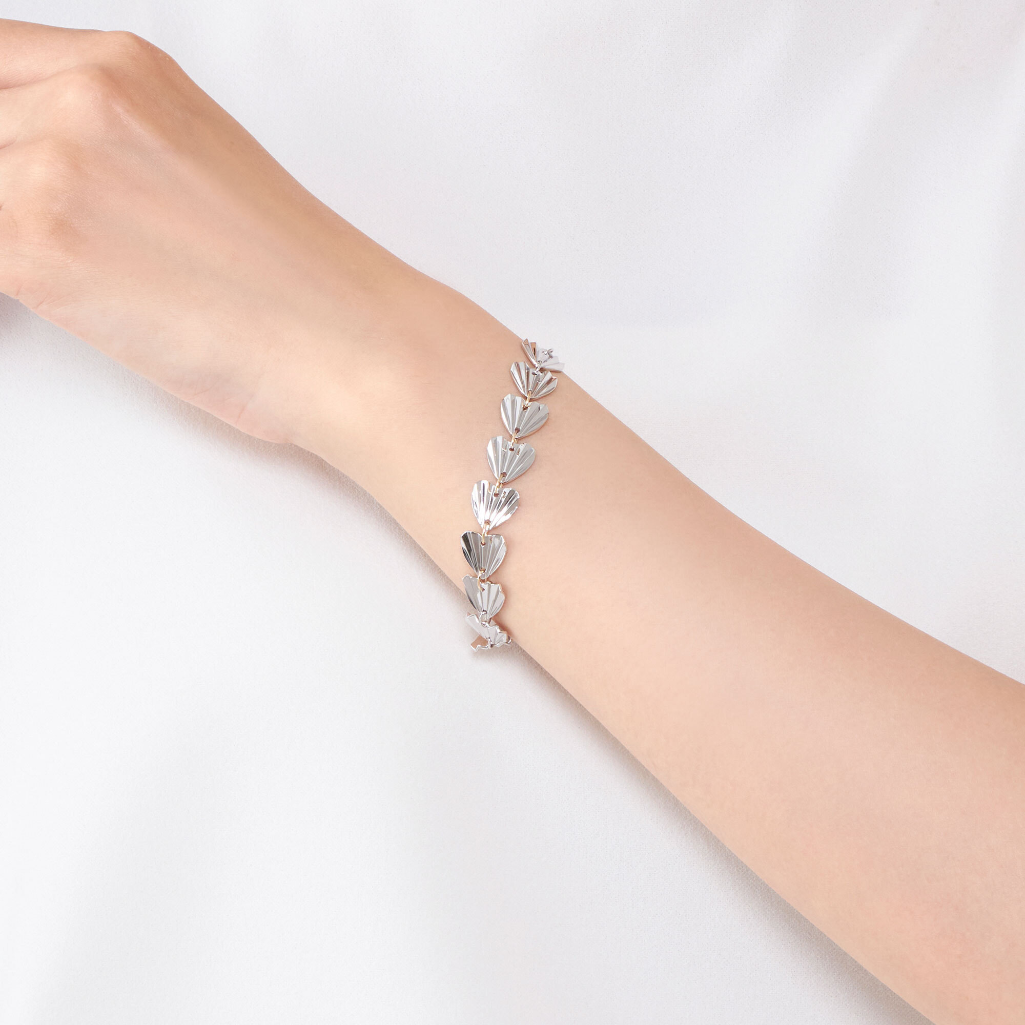 ぎざぎざさせたシルバーのハートがしなやかに手首に沿うブレスレット。