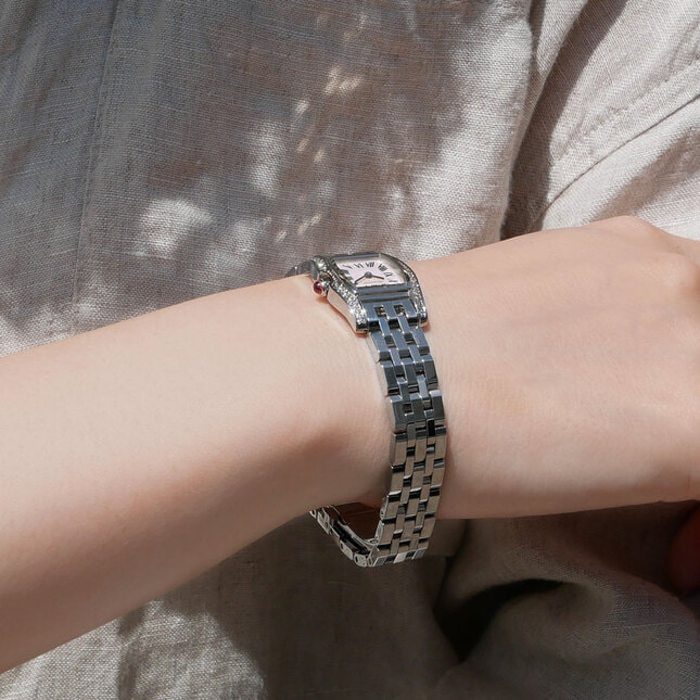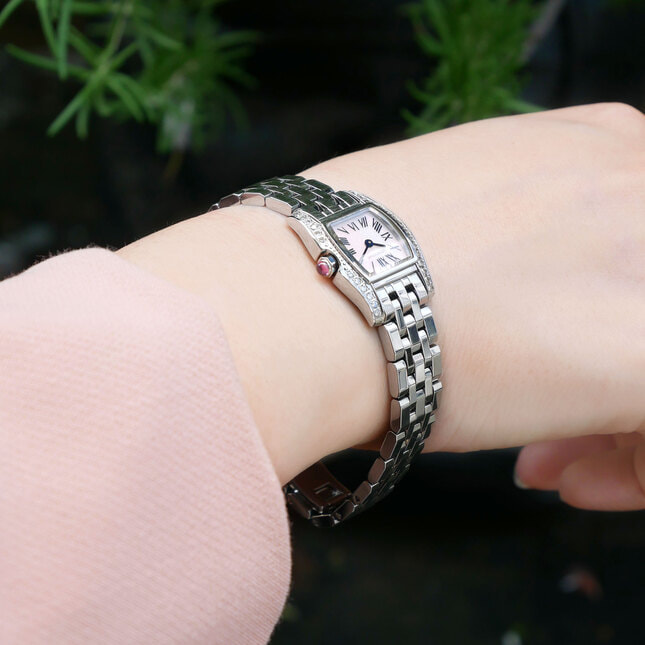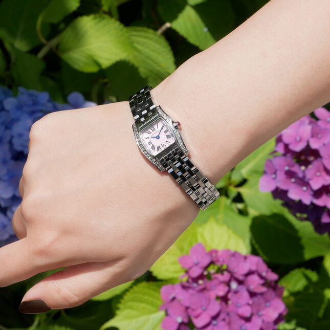 フェイスのサイドにラインであしらわれたダイヤモンドの輝きが、高級感を演出してくれます。
