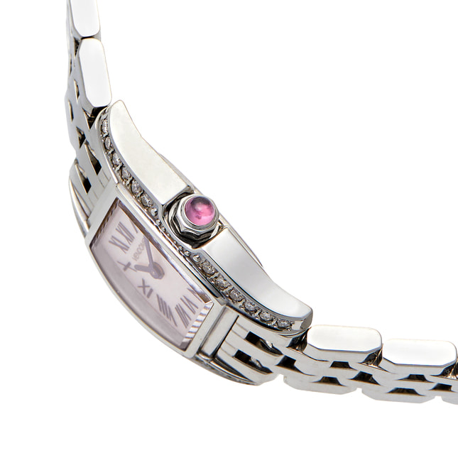 竜頭にセッティングされたロードライトガーネットは落ち着いた大人のピンクカラー。