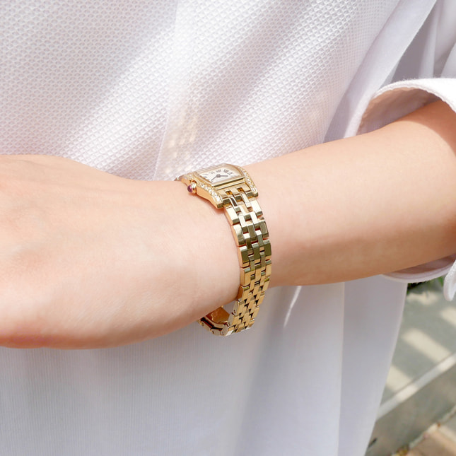 フェイスのサイドにラインであしらわれたダイヤモンドの輝きが高級感を演出してくれます。