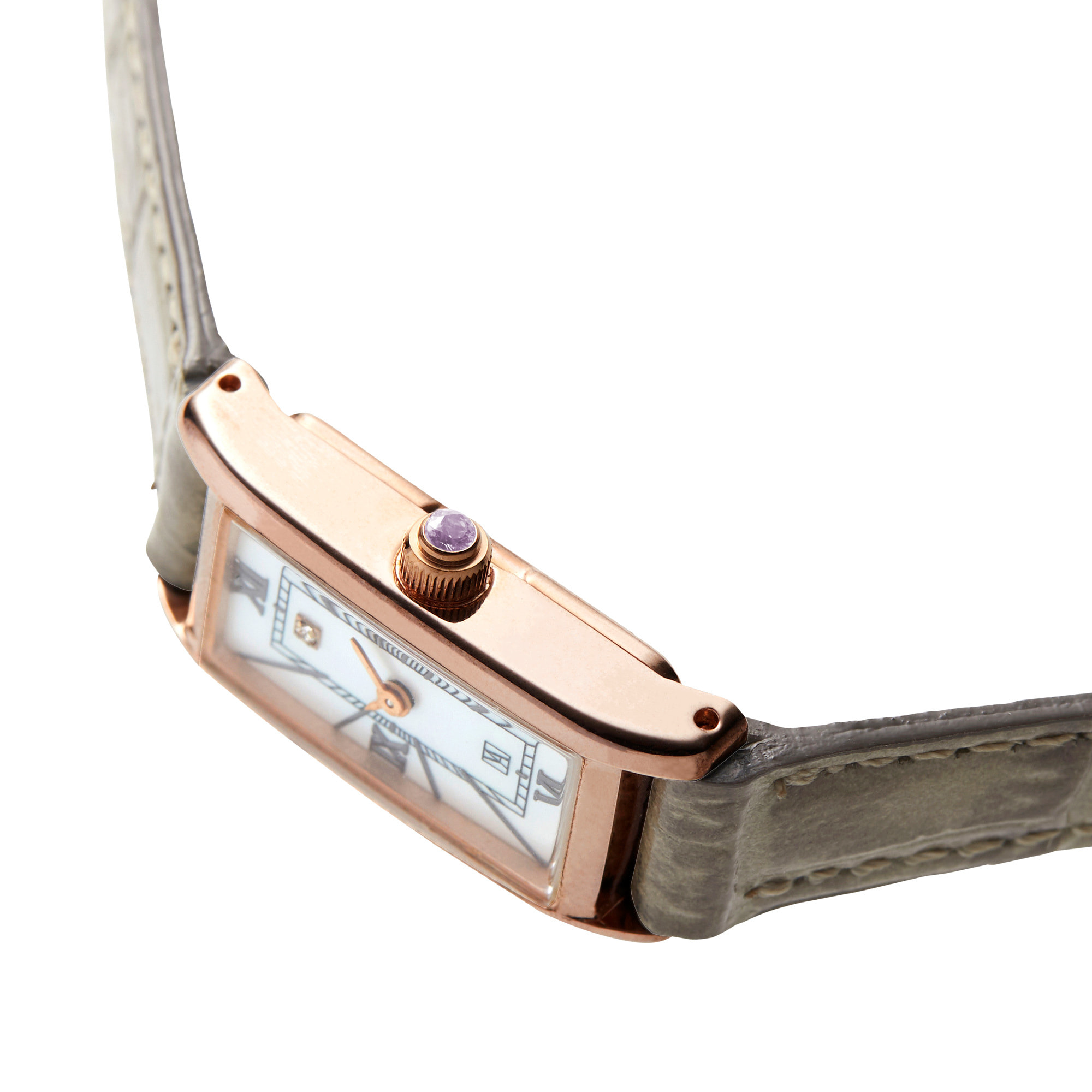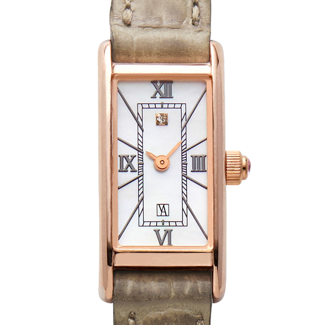 ミステリアスに輝くフェイスにはさりげなくダイヤモンドとモノグラムがきらめき、クロコ柄の型押しベルトのクラシカルな印象とともにオーセンティックで大人の品格を感じさせるデザイン。