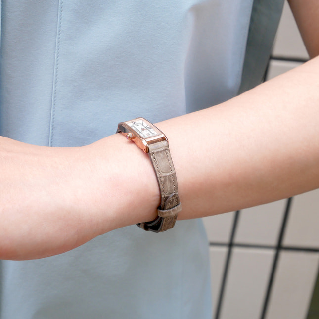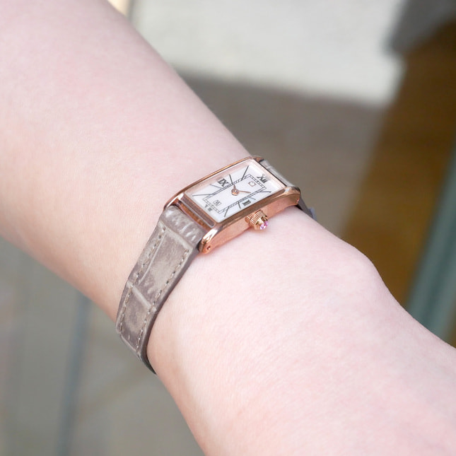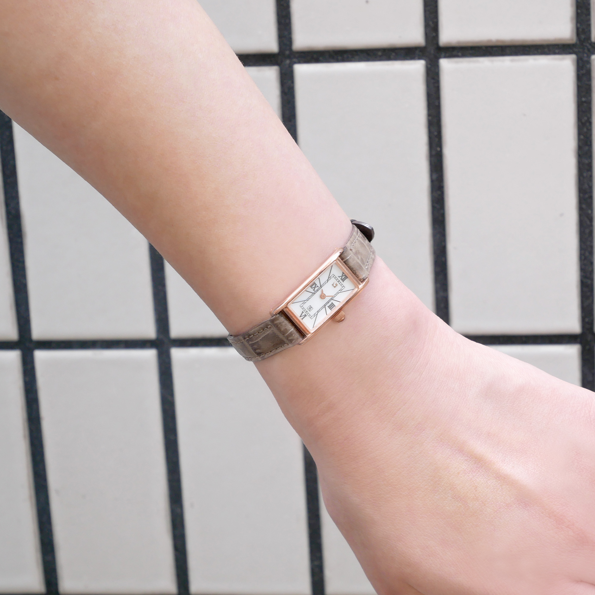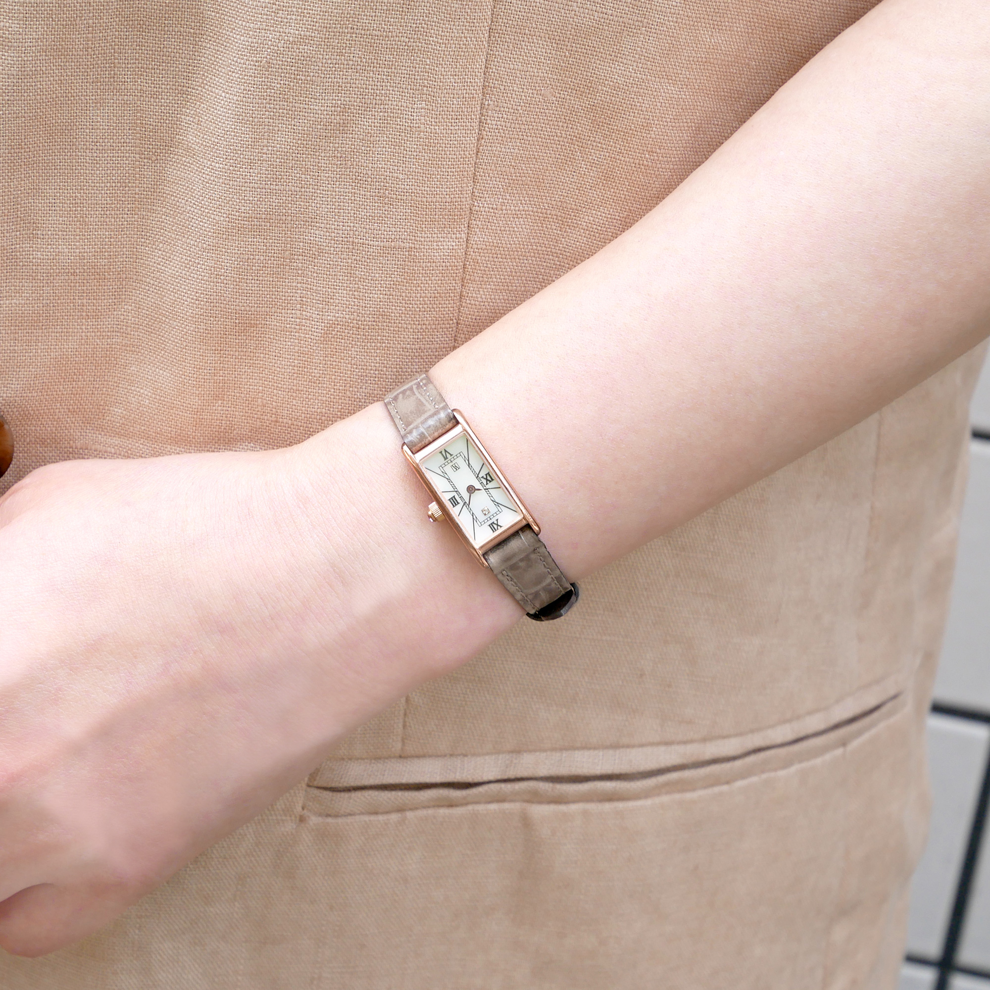 レクタングル(長方形)のフェイスがモダンな腕時計。