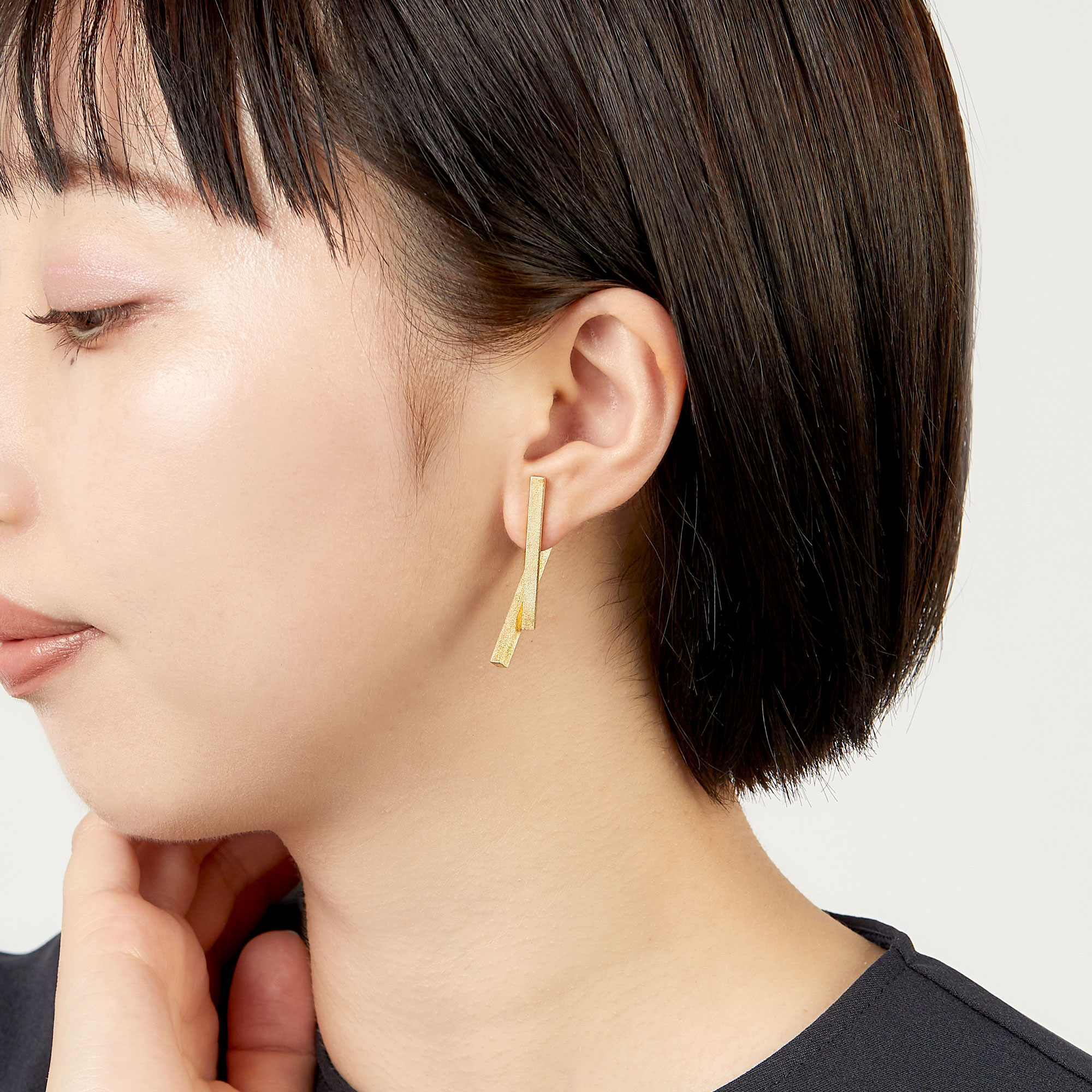 日本を代表する建築家 隈研吾氏と、デザイナー 大村真有美氏のデザインユニット。新感覚で身近なアート、ライフスタイルの実現に取り組む彼らとヴァンドーム青山のコレクションラインです。 隈建築の中でもそのインパクトで話題になった「スターバックス コーヒー 太宰府天満宮表参道店」がデザインソースの立体感あるピアス。 日本の伝統的な木造技術をシルバーの角柱で表現した大胆なデザイン。 側面に施したヘアライン加工が、スタイリッシュな直線の中にも柔らかな木材のイメージを感じさせる。 耳たぶを挟んでクロスする立体感はモダンで他にはない存在感。下がりパーツを取り外せる2WAY。 ▼シリーズアイテムは こちらKengo Kuma + MA,YU アイテム一覧