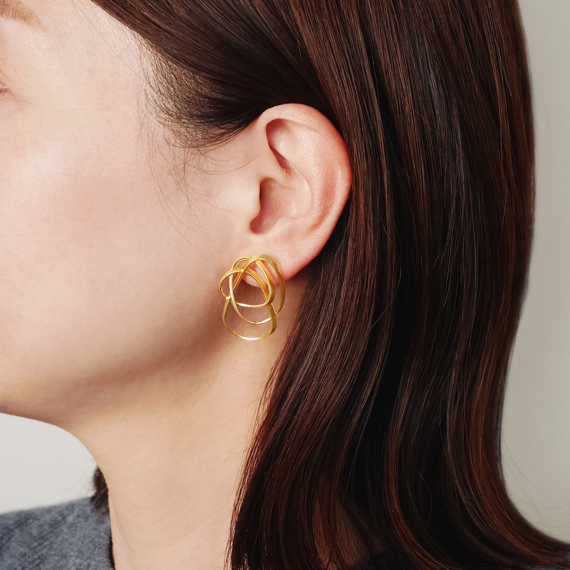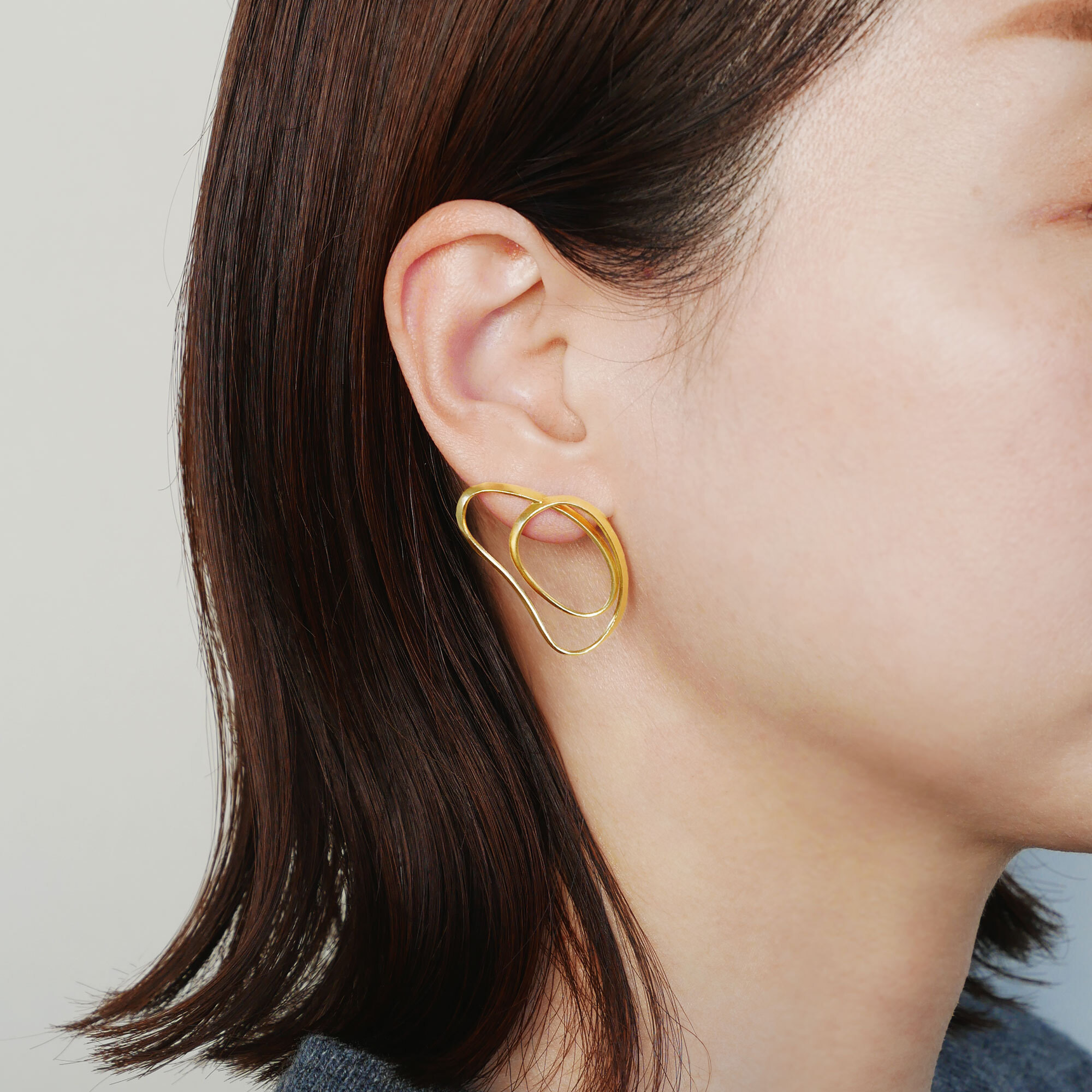 日本を代表する建築家 隈研吾氏と、デザイナー 大村真有美氏のデザインユニット。 新感覚で身近なアート、ライフスタイルの実現に取り組む彼らとヴァンドーム青山のコレクションラインです。 京都・平安神宮に作られたパビリオン「GURU-GURU」(ぐるぐる)がデザインソース。吉野杉の曲木によるパビリオンをシルバーで表現したシリーズです。ひとつながりのラインをぐるぐると巻いたような立体感の中に、木材のハリやたわみを感じさせる大胆なデザインはこれ一つでコーディネートの主役に。地金の表面はあえてピカピカに磨き上げないことで、木の持つ柔らかなテクスチャを表現しました。左右でデザインの異なるユニークなピアス。エアリーな立体感が、横顔に華やかさをプラスします。 ▼シリーズアイテムはこちらイヤリングGURU-GURU シリーズKengo Kuma + MA,YU アイテム一覧