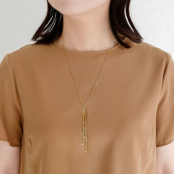 日本を代表する建築家 隈研吾氏と、デザイナー 大村真有美氏のデザインユニット。新感覚で身近なアート、ライフスタイルの実現に取り組む彼らとヴァンドーム青山のコレクションラインです。 隈研吾建築の特徴の一つでもあるルーバー(羽板)の輪郭をデザインソースにしたシリーズ。 ルーバーが連なったモチーフがユニークなネックレス。 着け映えするボリュームがありながら軽やかなデザインは、シンプルな服にこなれたおしゃれ感をプラスしてくれます。 ▼シリーズアイテムは こちらKengo Kuma + MA, YU アイテム一覧