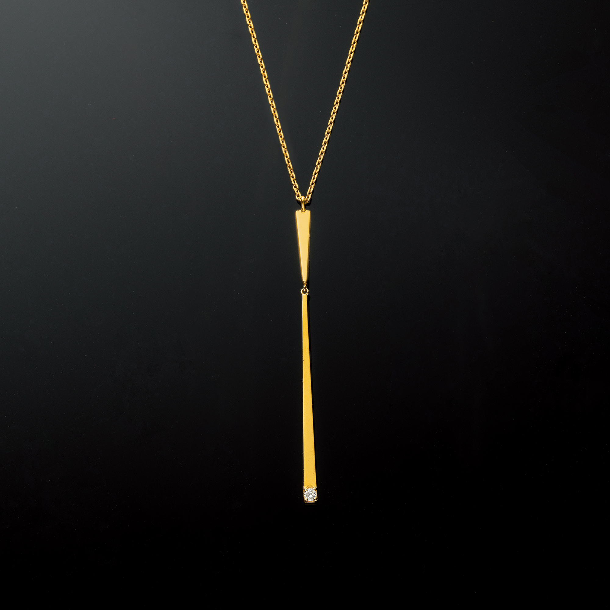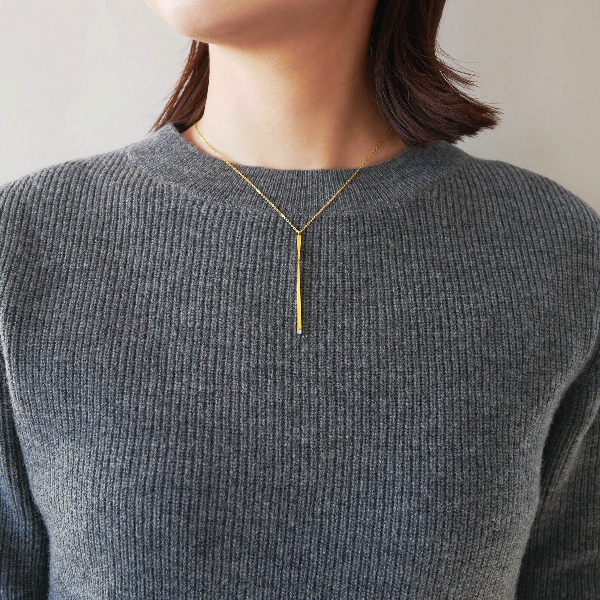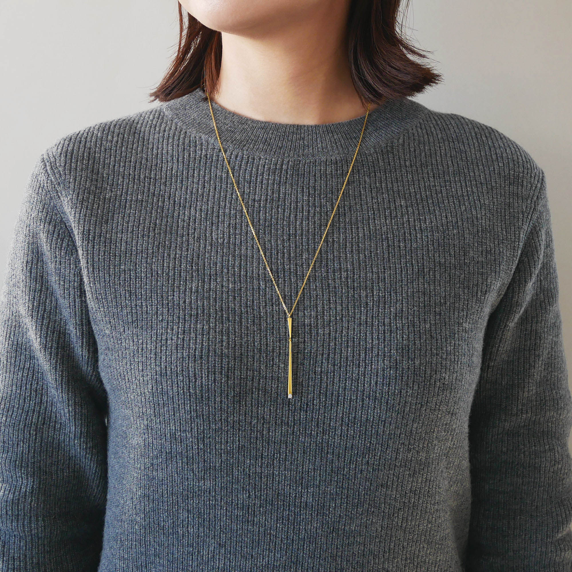 日本を代表する建築家 隈研吾氏と、デザイナー 大村真有美氏のデザインユニット。新感覚で身近なアート、ライフスタイルの実現に取り組む彼らとヴァンドーム青山のコレクションラインです。 檜の羽根をランダムに組み合わせたオーガニックなファサードは、大都市の中に出現した森をイメージ。 ブラジル・サンパウロに日本の多様な文化を発信する拠点として設立された「Japan House são paulo」がデザインソースのネックレスです。 ソリッドな羽板を光沢のあるシルバーで表現することで、スタイリッシュなジュエリーに仕立てました。 艶やかなバーが揺れるたびに立体的な輝きを放ち、胸元を明るく演出します。 先端にきらりと輝くダイヤモンドが、シンプルなデザインに存在感をプラスします。 ▼シリーズアイテムは こちらKengo Kuma + MA, YU by Vendome Aoyama