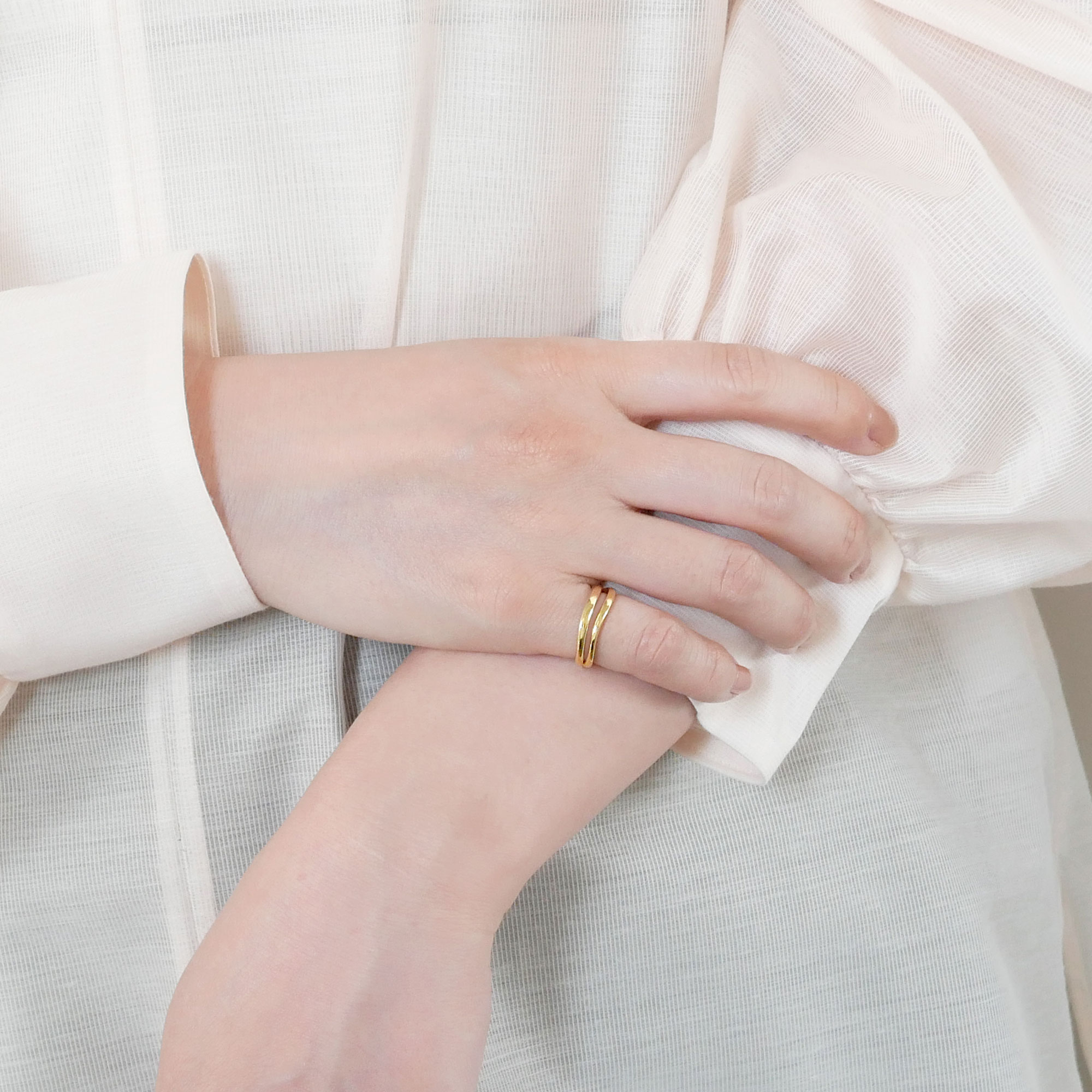 日本を代表する建築家 隈研吾氏と、デザイナー 大村真有美氏のデザインユニット。新感覚で身近なアート、ライフスタイルの実現に取り組む彼らとヴァンドーム青山のコレクションラインです。 隈研吾氏がスパゲティから空間の発想を得たシリーズ。 やわらかいイエローゴールドの曲線が描く、エアリーな立体感のピンキーリング。 小指以外の第二関節に着けてトレンドのファランジリングとしても使えるデザイン。 上下どちらの向きでも使えるデザインで、コーディネートの幅がさらに広がります。 ▼シリーズアイテムは こちらKengo Kuma + MA, YU アイテム一覧