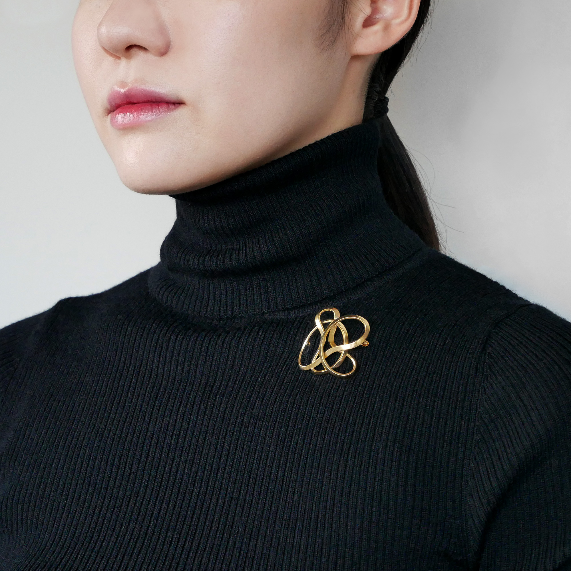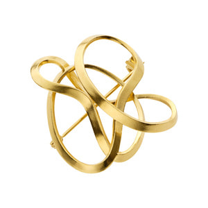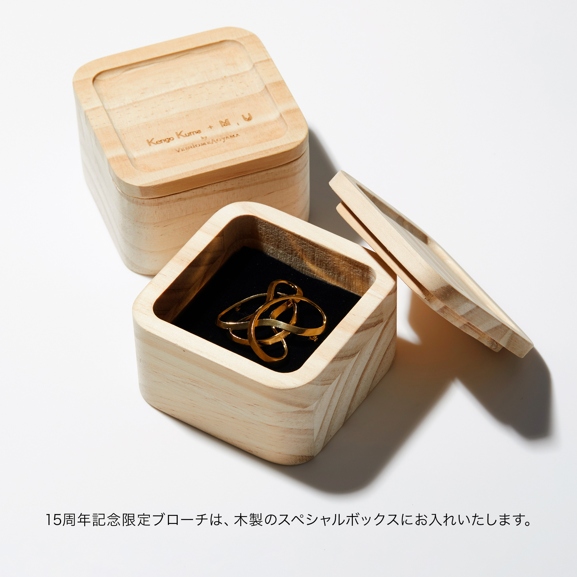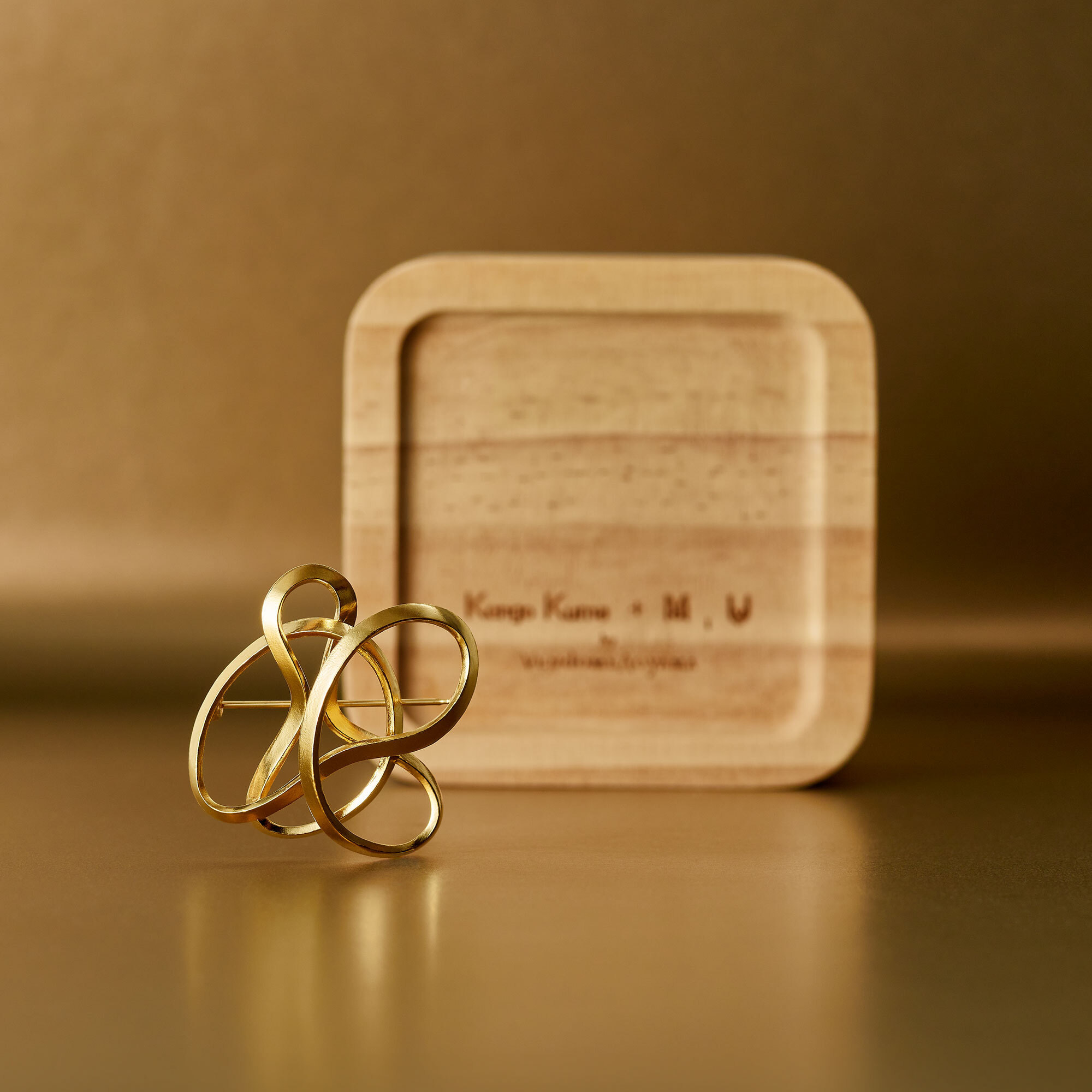≪15周年記念 限定品≫ 日本を代表する建築家 隈研吾氏と、デザイナー 大村真有美氏のデザインユニット。 新感覚で身近なアート、ライフスタイルの実現に取り組む彼らとヴァンドーム青山のコレクションラインです。 コレクションがスタートして15周年を迎えた、Kengo Kuma + MA,YU。 15周年を記念する限定品を人気シリーズのGURU-GURUから発売します。 トレンドの大ぶりブローチは、これからの季節に大活躍のアイテム。 ひとつながりのラインをぐるぐると巻いたような立体感が、インパクトのあるデザインです。 地金の表面はあえてピカピカに磨き上げないことで、ヴィンテージのような風合いに。 光りすぎないゴールドカラーが、こなれたおしゃれ感を演出します。 ニットやストールにも負けない存在感で、スタイリングに華やかさを添えるアイテムです。 モチーフとなった曲木をイメージした、木製のスペシャルボックスにお入れいたします。 角を丸く仕上げた肌触りのよさと、長く使うことで飴色に変化していく色もお楽しみいただけるボックスは、特別感があり、贈り物としてもおすすめです。 ▼シリーズアイテムはこちらGURU-GURU シリーズKengo Kuma + MA,YU アイテム一覧