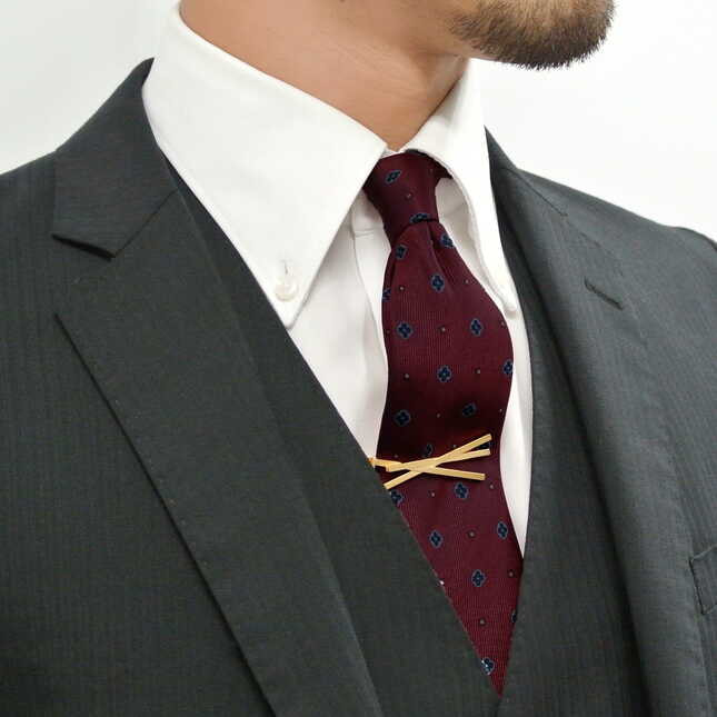 日本を代表する建築家 隈研吾氏と、デザイナー 大村真有美氏のデザインユニット。新感覚で身近なアート、ライフスタイルの実現に取り組む彼らとヴァンドーム青山のコレクションラインです。 隈建築の中でもそのインパクトで話題になった「スターバックス コーヒー 太宰府天満宮表参道店」がデザインソースの立体感あるタイバー(ネクタイピン)。 日本の伝統的な木造技術を、マットなゴールド色の角柱で表現したデザイン。 スタイリッシュな直線の中にも柔らかな木材のイメージを感じさせます。 大人の雰囲気の中にも遊び心をプラスした、コーディネートのポイントになるアイテムです。 モチーフとなった建築の説明をお付けし、オリジナルBOXにお入れします。 ギフトにも最適のアイテムです。 ▼シリーズアイテムはこちらカフリンクスつんつん シリーズKengo Kuma + MA, YU アイテム一覧