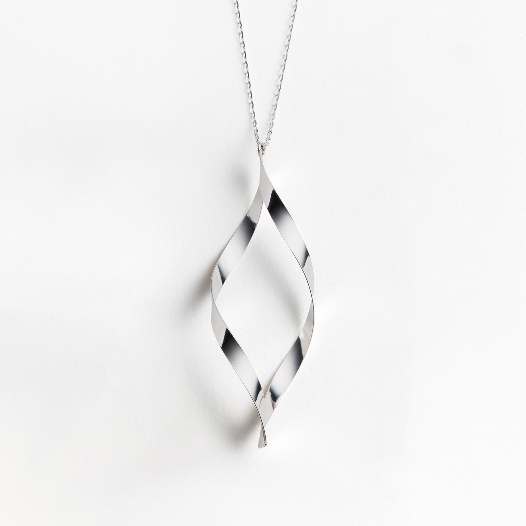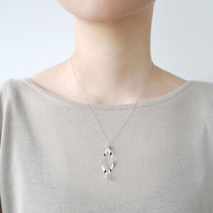 日本を代表する建築家 隈研吾氏と、デザイナー 大村真有美氏のデザインユニット。 新感覚で身近なアート、ライフスタイルの実現に取り組む彼らとヴァンドーム青山のコレクションラインです。 ミラノサローネ2015で発表されたパビリオン「Irori & Paper Cocoon」がデザインソース。 紙をひねって織り上げた空間を、ホワイトゴールドで軽やかに表現しました。 大きく空気を孕んだ様な立体は、インパクトのある大きさながらも、地金の薄さと、着ける人の動きに合わせてつるつると光が移動して見えるようなツヤが、ジュエリーらしい繊細な印象を与えてくれます。 少し長めのスライドアジャスターで、洋服に合わせて自由に長さの調節ができます。 ▼カラーバリエーションはこちらイエローゴールド ▼シリーズアイテムはこちらPaper Cocoon シリーズKengo Kuma + MA, YU アイテム一覧