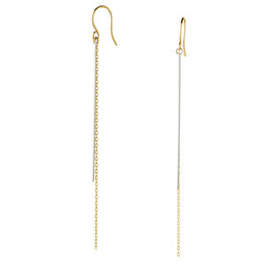 日本を代表する建築家 隈研吾氏と、デザイナー 大村真有美氏のデザインユニット。新感覚で身近なアート、ライフスタイルの実現に取り組む彼らとヴァンドーム青山のコレクションラインです。 イエローゴールドのチェーンとホワイトゴールドのバーが揺れるフックタイプのピアス。 2色のゴールドで、様々なコーディネートに合わせやすいアイテムです。 デザインはシンプル。スタイリッシュな印象です。 揺れるロング・スイングピアスで、ゴールドの優しい輝きを横顔に。 ▼シリーズアイテムは こちらKengo Kuma + MA, YU アイテム一覧