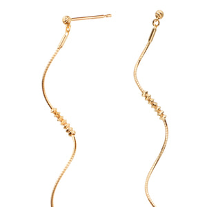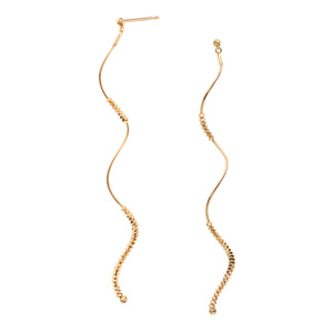 日本を代表する建築家 隈研吾氏と、デザイナー 大村真有美氏のデザインユニット。新感覚で身近なアート、ライフスタイルの実現に取り組む彼らとヴァンドーム青山のコレクションラインです。 隈研吾氏がスパゲティから空間の発想を得た「Pasta」シリーズ。 形状記憶を施したゴールドのスパイラルにカットビーズを通した、繊細ながら目を引くピアスです。 規則的なスパイラルが生むエアリーな立体感と、程よい長さがこなれたおしゃれ感を演出。 フレキシブルに移動する光の粒のようなゴールドのカットビーズが、動きにあわせてキラキラと輝き、顔周りにドラマティックな表情をプラスします。 ▼シリーズアイテムはこちらPasta シリーズKengo Kuma + MA, YU アイテム一覧