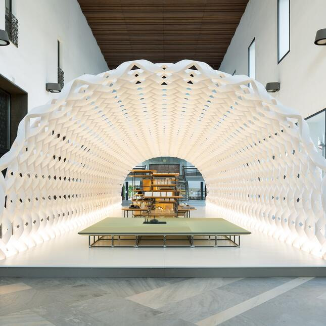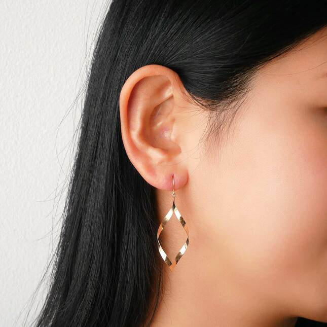 日本を代表する建築家 隈研吾氏と、デザイナー 大村真有美氏のデザインユニット。 新感覚で身近なアート、ライフスタイルの実現に取り組む彼らとヴァンドーム青山のコレクションラインです。 ミラノサローネ2015で発表されたパビリオン「Irori & Paper Cocoon」がデザインソース。 紙をひねって織り上げた空間を、イエローゴールドで軽やかに表現しました。 お顔まわりで揺れるデザインは、インパクトのある大きさながらも、地金の薄さとつるつると光が移動して見えるようなツヤが、ジュエリーらしい繊細な印象を与えてくれます。 ▼カラーバリエーションはこちらホワイトゴールド ▼シリーズアイテムはこちらKengo Kuma + MA, YU アイテム一覧