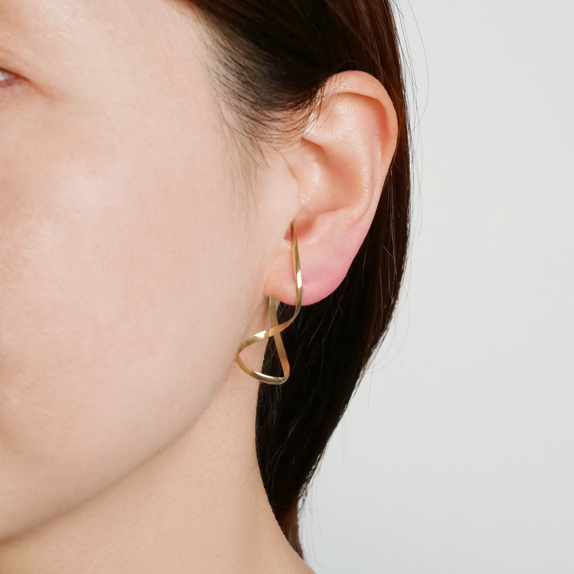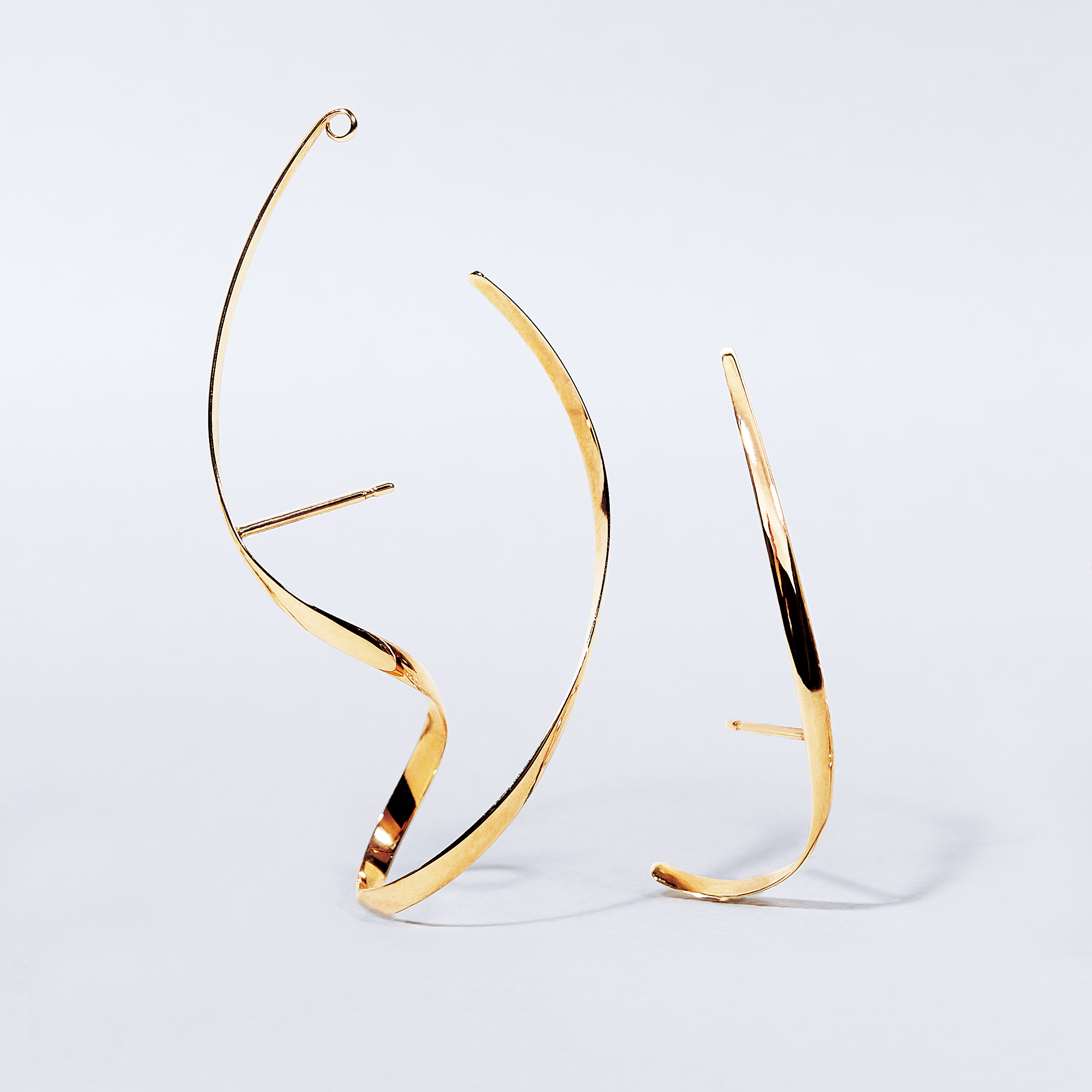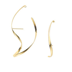 日本を代表する建築家 隈研吾氏と、デザイナー 大村真有美氏のデザインユニット。新感覚で身近なアート、ライフスタイルの実現に取り組む彼らとヴァンドーム青山のコレクションラインです。 耳たぶを取り巻くような大胆な立体感がおしゃれなイヤーカフ風ピアス。 職人が一つ一つ手曲げして作ったラインは、ゴールドのツヤが顔まわりに華やかなインパクトを添えてくれます。 どんな風に着けてるの?と目を引くユニークなデザインですが、ピアスポストがある事でずれたり落ちたりせず、安定して着けられます。 大胆なデザインと、シンプルなラインの2個セット。 片方ずつはもちろん、そのまま左右で着けるだけでバランスの良いコーディネートが完成します。 これ一つで旬な顔になれる主役級アイテムです。 ※ひとつひとつ手曲げで製作しているため、サイズ・形状に若干の個体差がございます。Kengo Kuma + MA, YU アイテム一覧