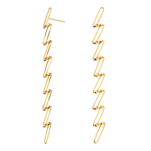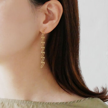 日本を代表する建築家 隈研吾氏と、デザイナー 大村真有美氏のデザインユニット。新感覚で身近なアート、ライフスタイルの実現に取り組む彼らとヴァンドーム青山のコレクションラインです。 岡山県真庭市「GREENable HIRUZEN」内のパビリオン「風の葉」がデザインソース。 木の葉がスパイラル状に舞い上がるイメージからインスピレーションを得た、グラフィカルなジュエリー。 ひとつひとつのパーツをジグザグのようなパターンで繋いだピアスは、抜け感がありながらたっぷりとしたゴールドの存在感を感じさせる仕上がり。 長くスイングするピアスは耳元でドラマチックな輝きを放ちます。 ▼シリーズアイテムはこちらkazenoha シリーズKengo Kuma + MA,YU アイテム一覧