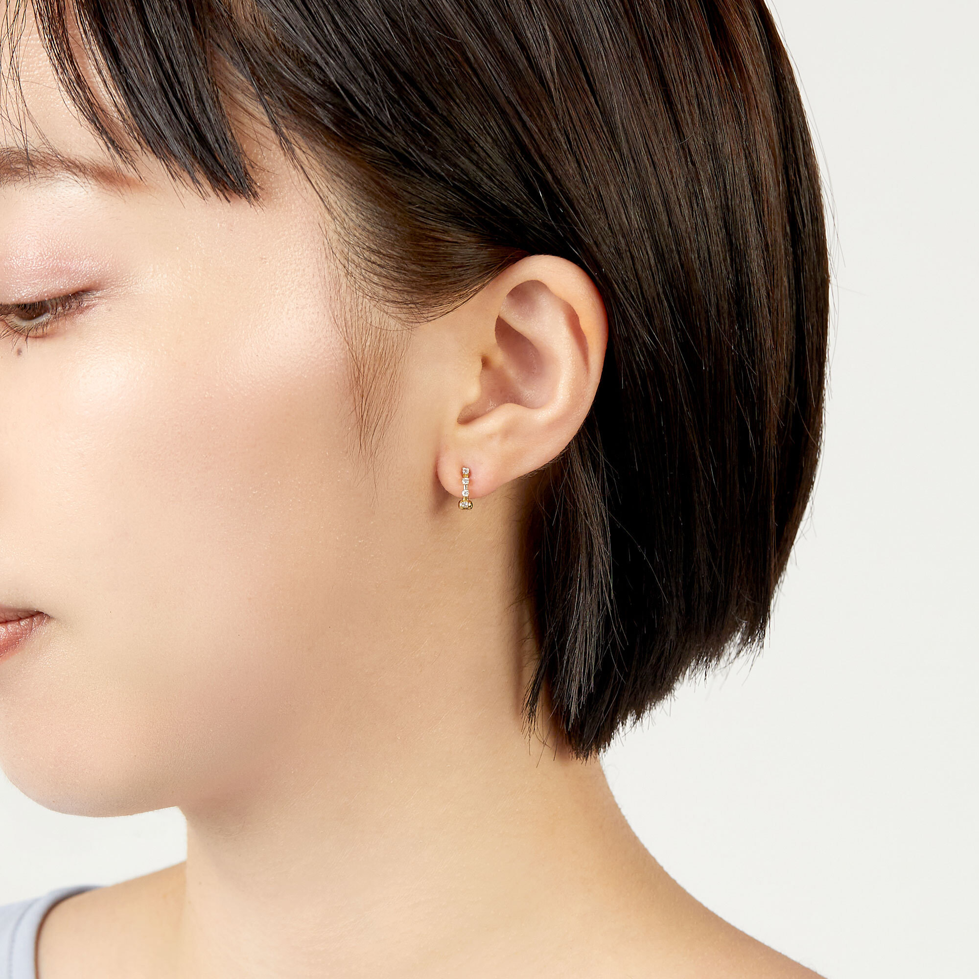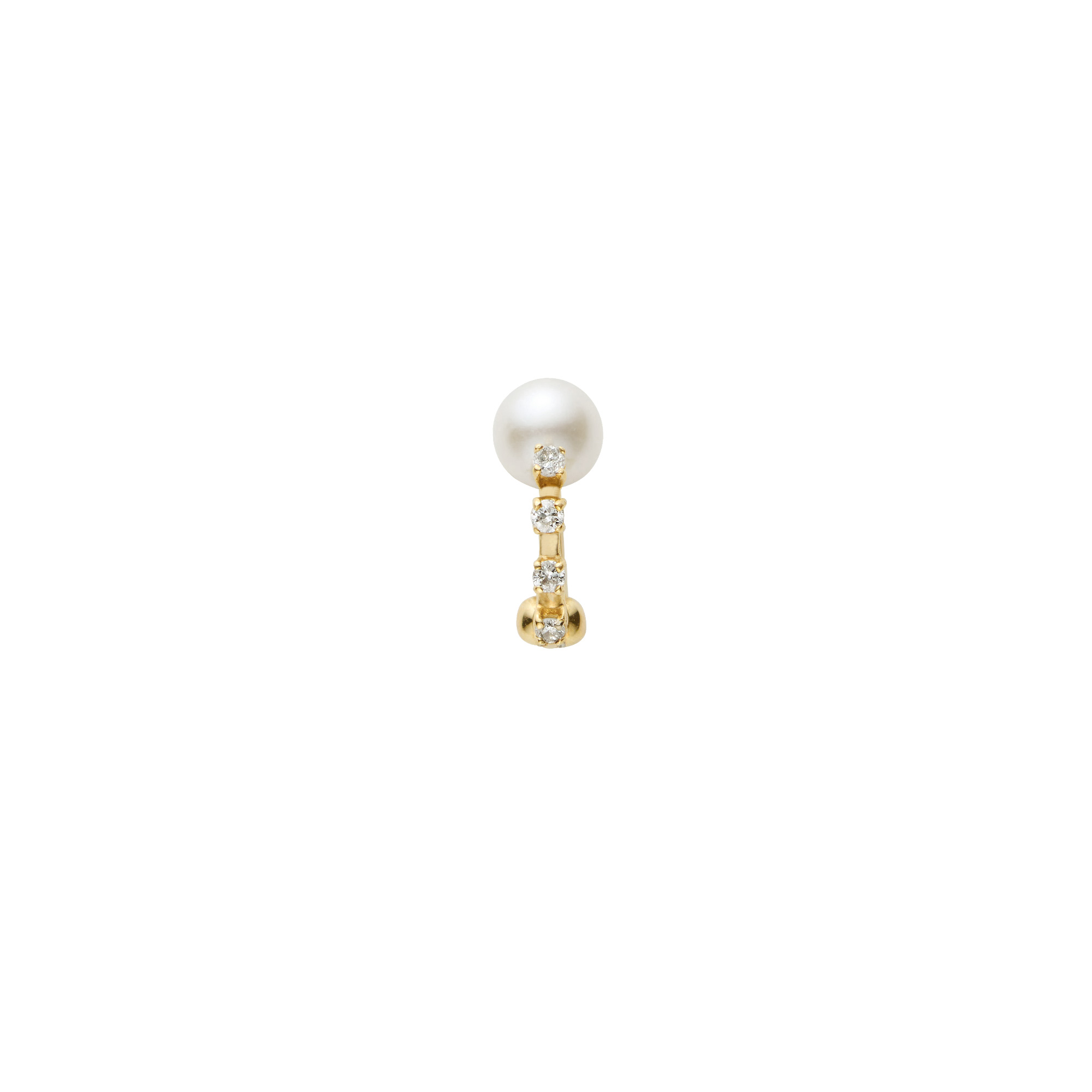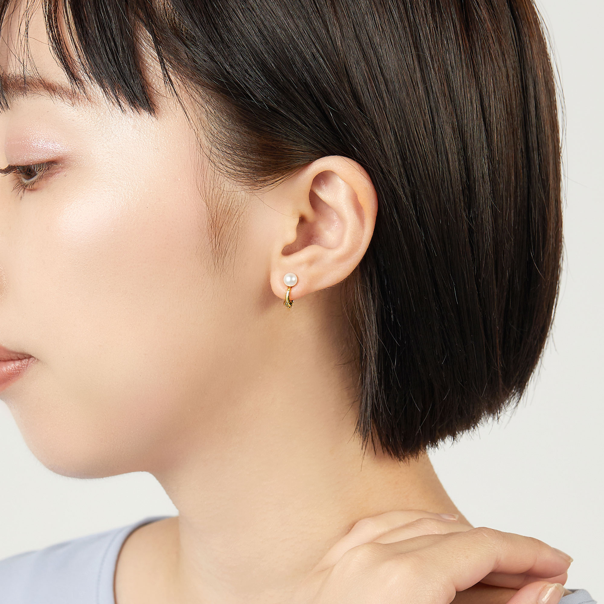 日本を代表する建築家 隈研吾氏と、デザイナー 大村真有美氏のデザインユニット。新感覚で身近なアート、ライフスタイルの実現に取り組む彼らとヴァンドーム青山のコレクションラインです。 耳たぶにはさむだけでピアスのようにすっきりと着けられる、ピアスのようなイヤリング、大人気のピアリング(片耳用)です。 ピアスの方が、穴の開いていない位置にプラスアルファで着けるのもおすすめです。 表裏はリバーシブルで、一粒パールとダイヤモンドのフープ風、2つのタイプのデザインが楽しめます。 特許取得の金具を使用し、着けやすく落ちにくい作り。 やわらかく光るホワイトパールと、フープ状にあしらわれたダイヤモンドのイノセントな輝きが上品な組み合わせ。 ▼カラーバリエーションはこちらホワイトゴールド ▼両耳用はこちら ▼シリーズアイテムはこちら▼6月誕生石 パール・真珠のアイテムはこちらKengo Kuma + MA, YU アイテム一覧