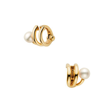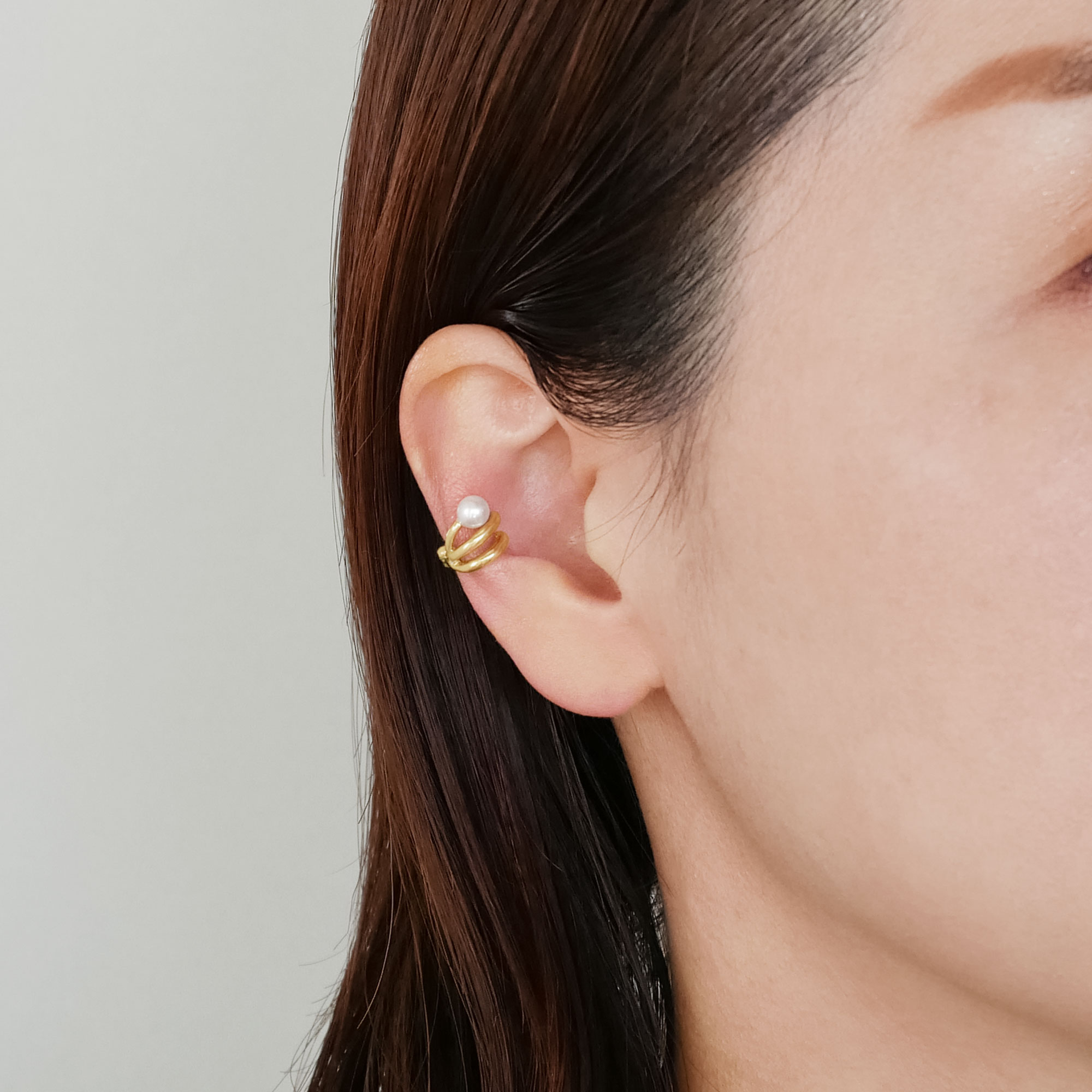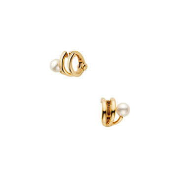 日本を代表する建築家 隈研吾氏と、デザイナー 大村真有美氏のデザインユニット。 新感覚で身近なアート、ライフスタイルの実現に取り組む彼らとヴァンドーム青山のコレクションラインです。 隈研吾氏がスパゲティから空間の発想を得た「Pasta」シリーズから、ピアスのようなイヤリング、大人気のピアリングです。 くるくると巻いたマカロニのような小さなフープを重ね着けしているように見えるデザイン。 耳たぶの上にポロンと乗るパールがデザインのポイントになっています。 耳たぶの定番的な位置だけでなく、すこし上の軟骨や耳殻に沿ってつけるのもお洒落。 両耳に1つずつ着けるだけでなく片方の耳に2つ着けたり、ピアスホールのある方でも、耳のホール以外の場所に着けるなど、耳周りのおしゃれのバリエーションが広がるアイテムです。 ピアリングは特許取得の金具を使用しており、挟むだけでしっかりとホールドされ落ちにくい構造です。 またバネとは違うので耳たぶに力がかからず、1日中着けていても痛くなりにくい特徴があります。 ▼シリーズアイテムはこちらPasta シリーズ▼6月誕生石 パール・真珠のアイテムはこちらKengo Kuma + MA,YU アイテム一覧