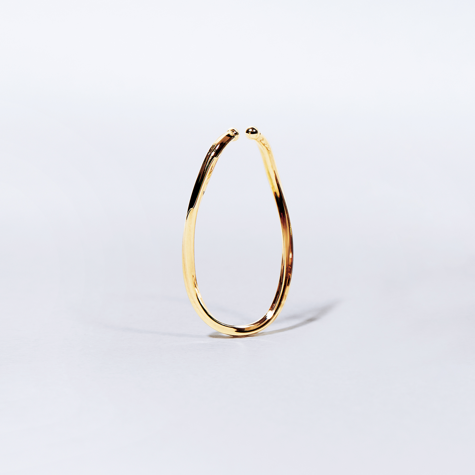 日本を代表する建築家 隈研吾氏と、デザイナー 大村真有美氏のデザインユニット。 新感覚で身近なアート、ライフスタイルの実現に取り組む彼らとヴァンドーム青山のコレクションラインです。 ピアスホールがなくても耳にはさむだけで簡単に着けられるイヤーカフ(片耳用)。 1.5mmの太さの角線を少しひねったオーバル型はシンプルながら、美しいツヤと立体感が顔まわりに華やかさを添えます。 左右どちらの耳にもお着けいただけます。耳の形には個人差がありますので、ぴったりとフィットする向きでお使いください。 フォルムの違う他のイヤーカフや、ピアリングとのコーディネートもおすすめです。 ▼カラーバリエーションはこちらホワイトゴールドKengo Kuma + MA, YU アイテム一覧