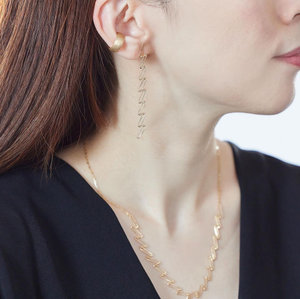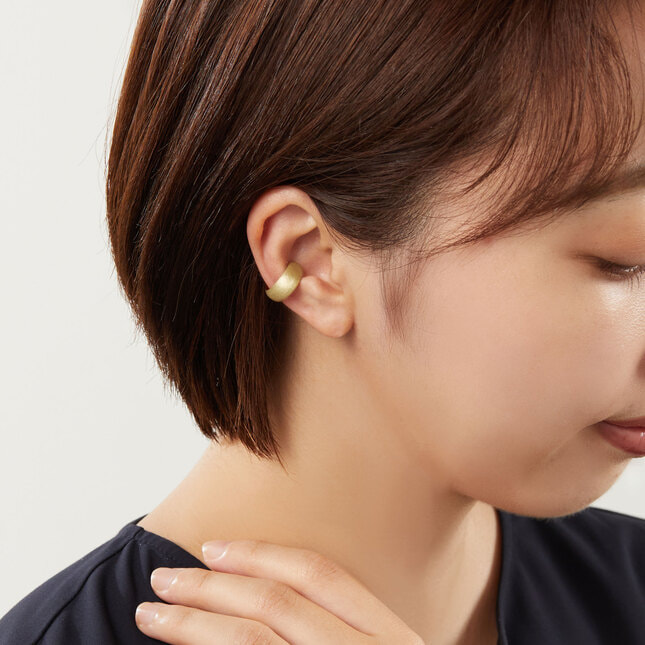 日本を代表する建築家 隈研吾氏と、デザイナー 大村真有美氏のデザインユニット。 新感覚で身近なアート、ライフスタイルの実現に取り組む彼らとヴァンドーム青山のコレクションラインです。 隈研吾氏がスパゲティから空間の発想を得た「Pasta」シリーズ。 幅広デザインでありながら軽い着け心地のイヤーカフ。 フィット感があり、通常の位置だけではなく、耳の上のほうへ着用することもできます。 ピアスやイヤリングとのコーディネートもおしゃれにきまるシンプルデザイン。 表面に施したサティーナ仕上げが光りすぎず、こなれ感を演出します。 ※耳の形状により着用感には個人差があります。 ▼シリーズアイテムはこちらPasta シリーズKengo Kuma + MA, YU アイテム一覧