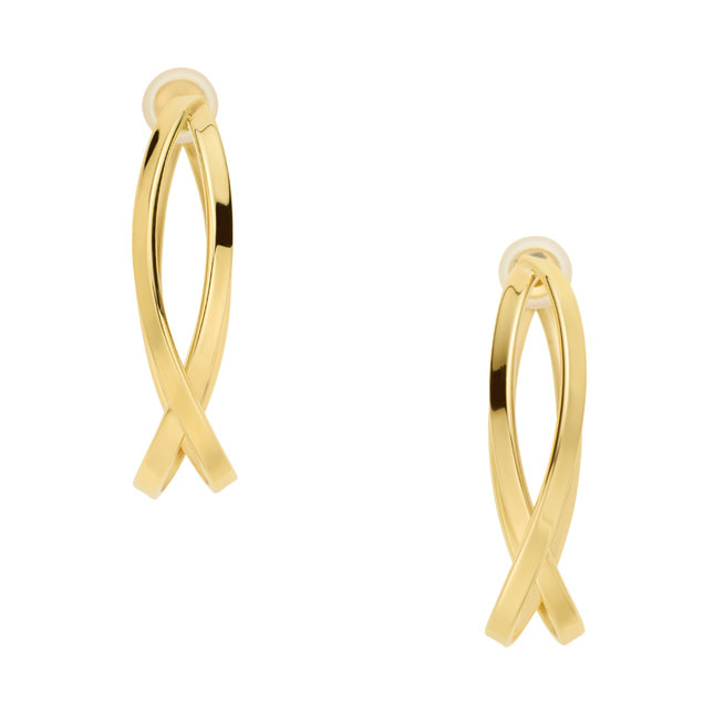 日本を代表する建築家 隈研吾氏と、デザイナー 大村真有美氏のデザインユニット。 新感覚で身近なアート、ライフスタイルの実現に取り組む彼らとヴァンドーム青山のコレクションラインです。 京都・平安神宮に作られたパビリオン「GURU-GURU」(ぐるぐる)がデザインソース。 ひとつながりのラインをぐるぐると巻いたような立体感が美しいフープイヤリング。 着け映えするサイズ感でありながら、軽やかで使いやすいデザイン。 ゴールドのツヤが顔まわりに華やかさをプラスします。 ▼シリーズアイテムは こちらKengo Kuma + MA, YU アイテム一覧