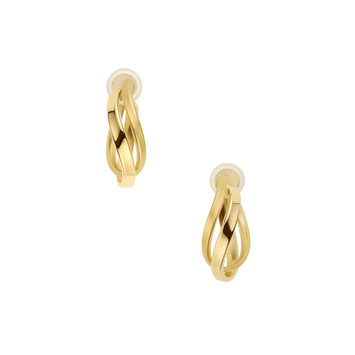 ひとつながりのラインをぐるぐると巻いたような立体感が美しいK10イエローゴールドのフープイヤリング。