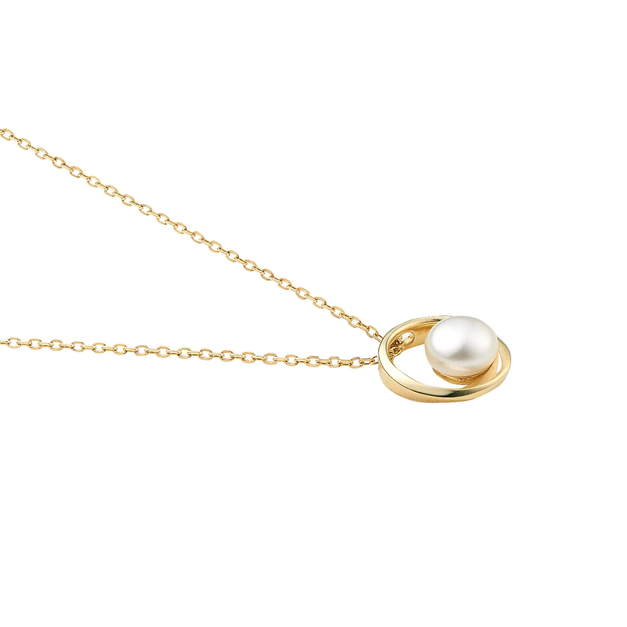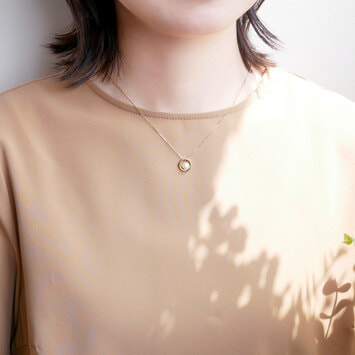 日本を代表する建築家 隈研吾氏と、デザイナー 大村真有美氏のデザインユニット。新感覚で身近なアート、ライフスタイルの実現に取り組む彼らとヴァンドーム青山のコレクションラインです。 ユニークな移動式茶室『Teehaus』(ティーハウス)をモチーフにしたシリーズの、プチサイズのネックレス。 ニュアンスのあるイエローゴールドのサークルに淡水パールをあしらった立体感あるデザイン。 シンプルなスタイルから個性的なコーディネートまで合わせやすいジュエリーはプレゼントにもおすすめ。 ▼カラーバリエーションはこちらホワイトゴールド ▼シリーズアイテムはこちらTeehaus シリーズ▼6月誕生石 パール・真珠のアイテムはこちらKengo Kuma + MA, YU アイテム一覧