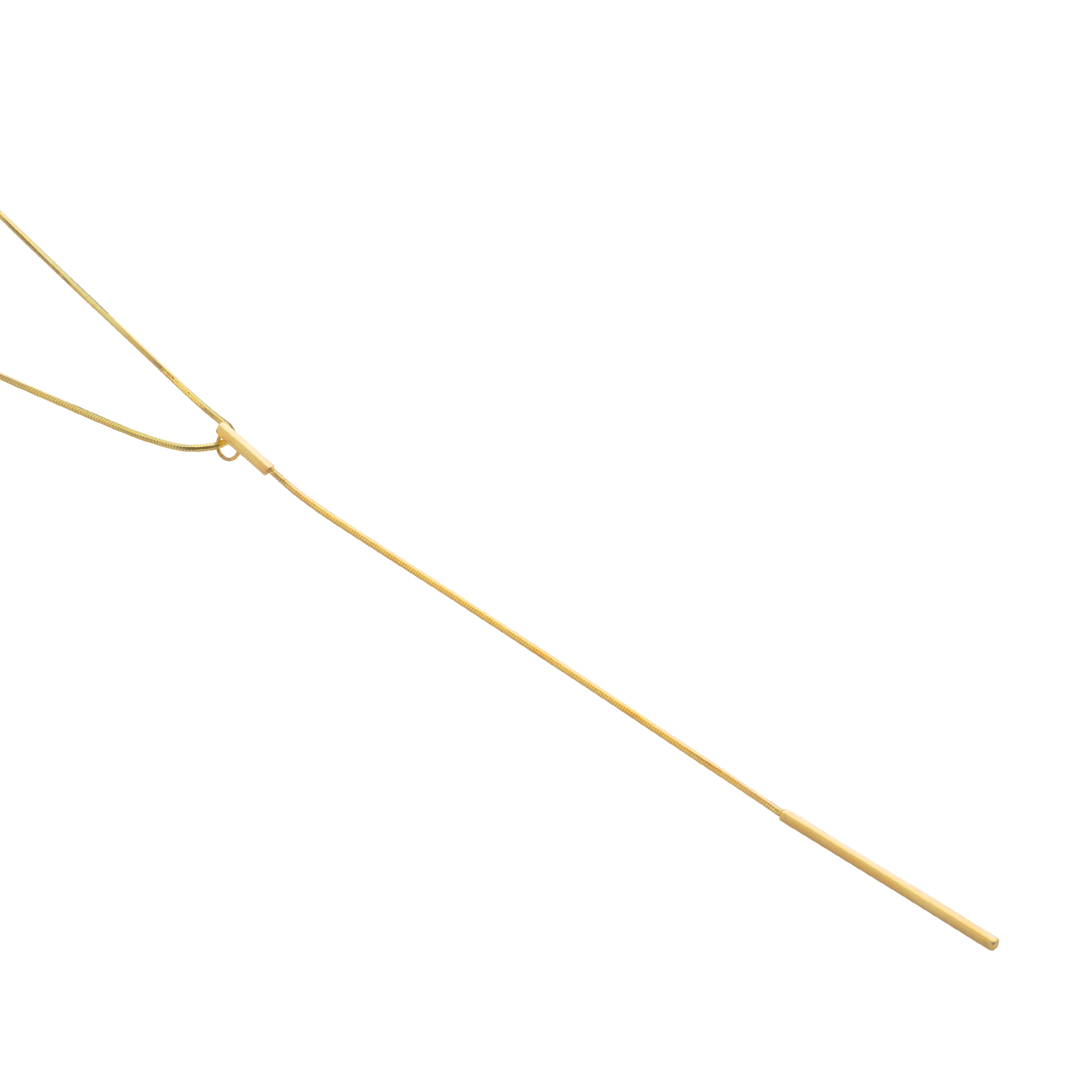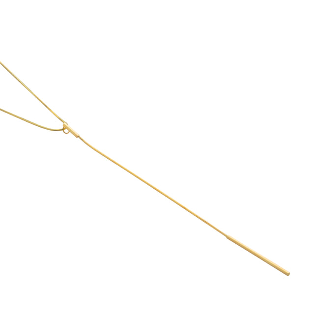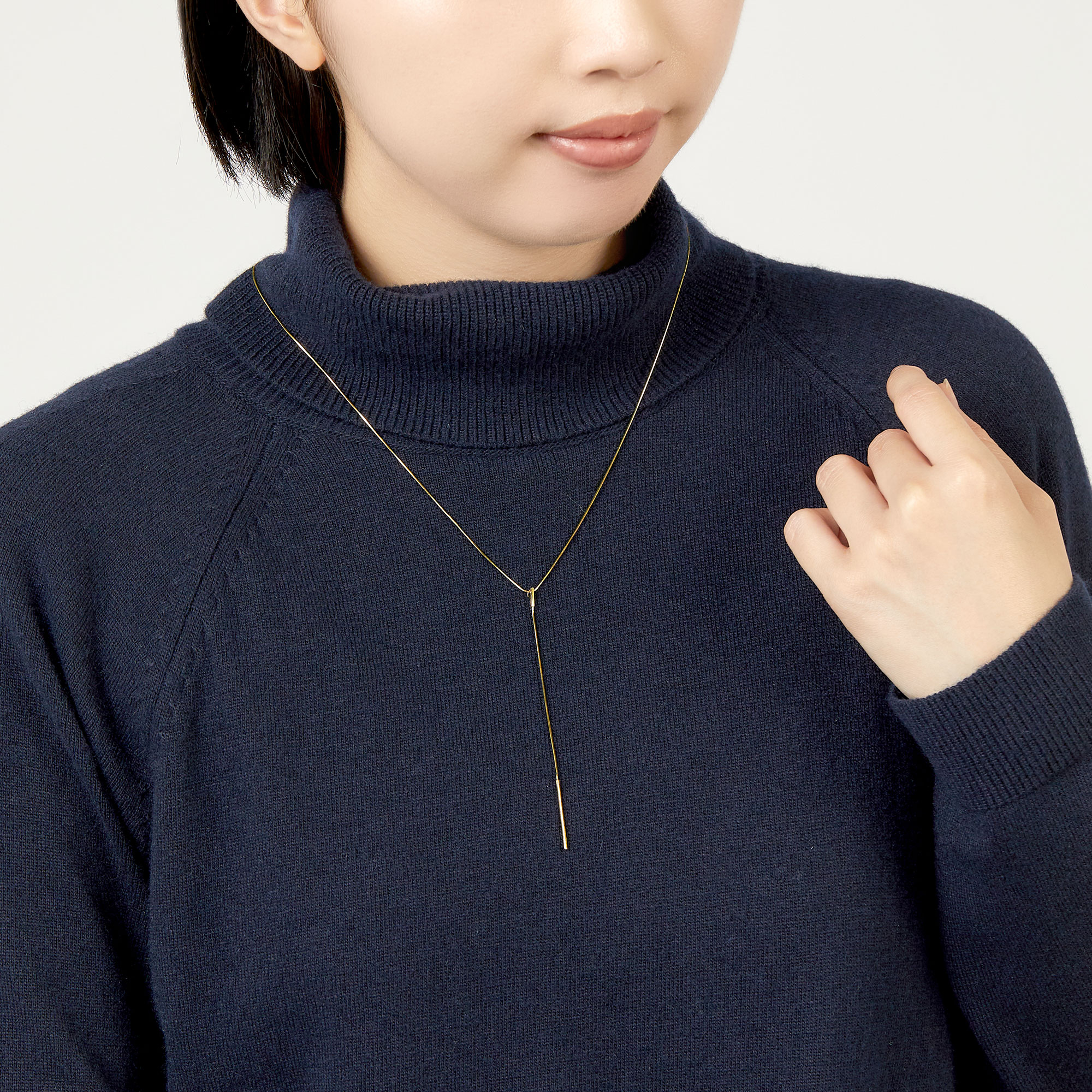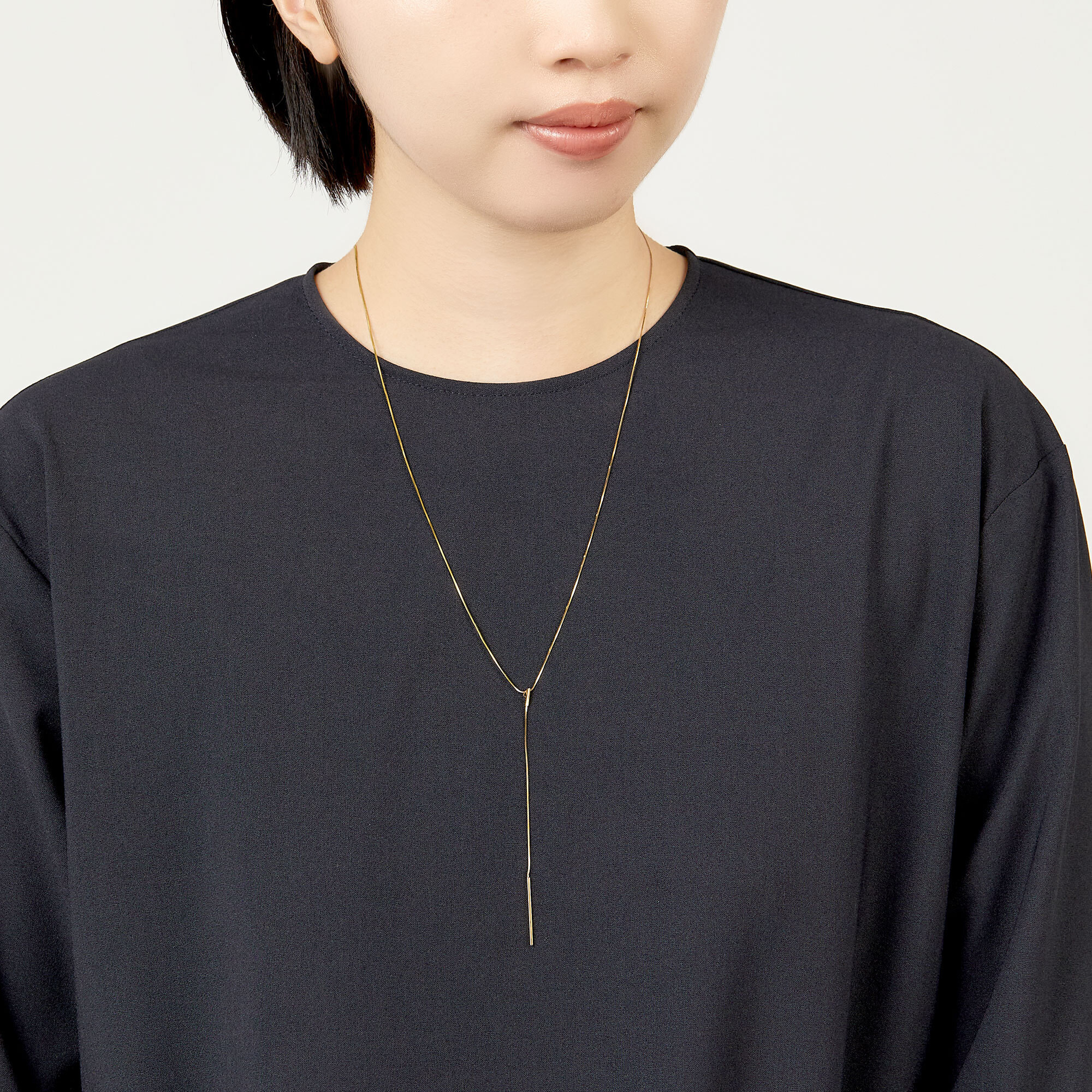 日本を代表する建築家 隈研吾氏と、デザイナー 大村真有美氏のデザインユニット。新感覚で身近なアート、ライフスタイルの実現に取り組む彼らとヴァンドーム青山のコレクションラインです。 隈研吾氏がスパゲティから空間の発想を得たシリーズ。 ストンと落ちる直線のラインをとろみ感の美しいゴールドチェーンと角線で表現したネックレス。 長めのY字ネックレスはリーンで洗練された印象。光沢のラインがデコルテをモダンに演出します。 スライドアジャスターで、洋服に合わせて自由に長さの調節ができます。 ▼シリーズアイテムはこちらKengo Kuma + MA, YU アイテム一覧
