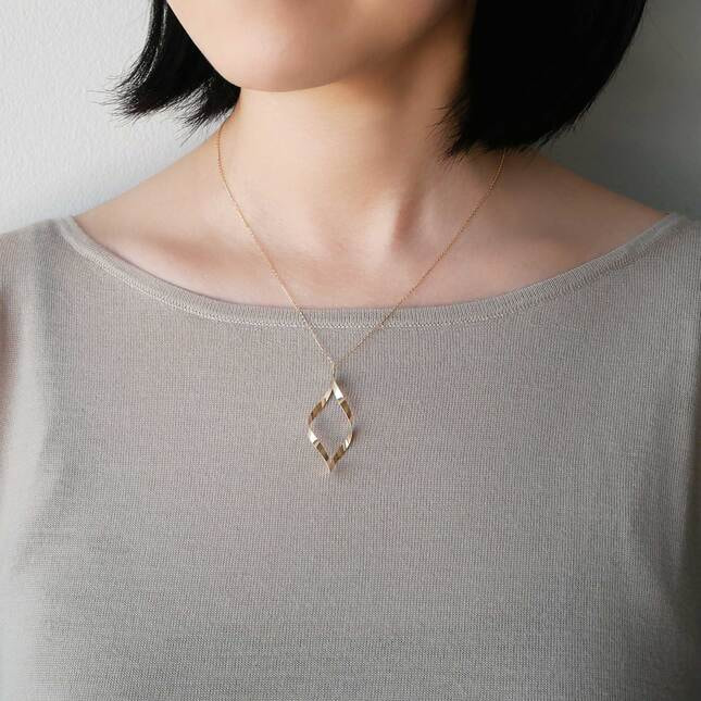 日本を代表する建築家 隈研吾氏と、デザイナー 大村真有美氏のデザインユニット。 新感覚で身近なアート、ライフスタイルの実現に取り組む彼らとヴァンドーム青山のコレクションラインです。 ミラノサローネ2015で発表されたパビリオン「Irori & Paper Cocoon」がデザインソース。 紙をひねって織り上げた空間を、イエローゴールドで軽やかに表現しました。 大きく空気を孕んだ様な立体は、インパクトのある大きさながらも、地金の薄さと、着ける人の動きに合わせてつるつると光が移動して見えるようなツヤが、ジュエリーらしい繊細な印象を与えてくれます。 少し長めのスライドアジャスターで、洋服に合わせて自由に長さの調節ができます。 ▼カラーバリエーションはこちらホワイトゴールド ▼シリーズアイテムはこちらPaper Cocoon シリーズKengo Kuma + MA, YU アイテム一覧