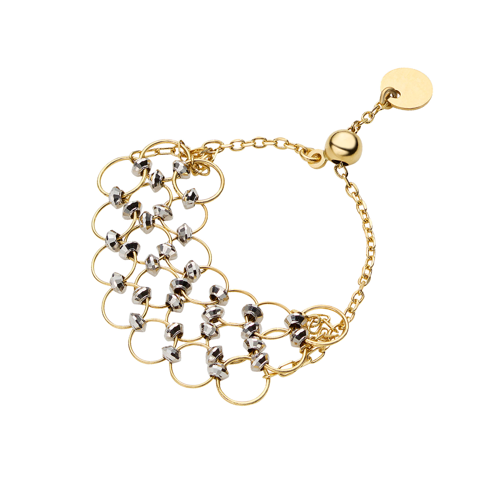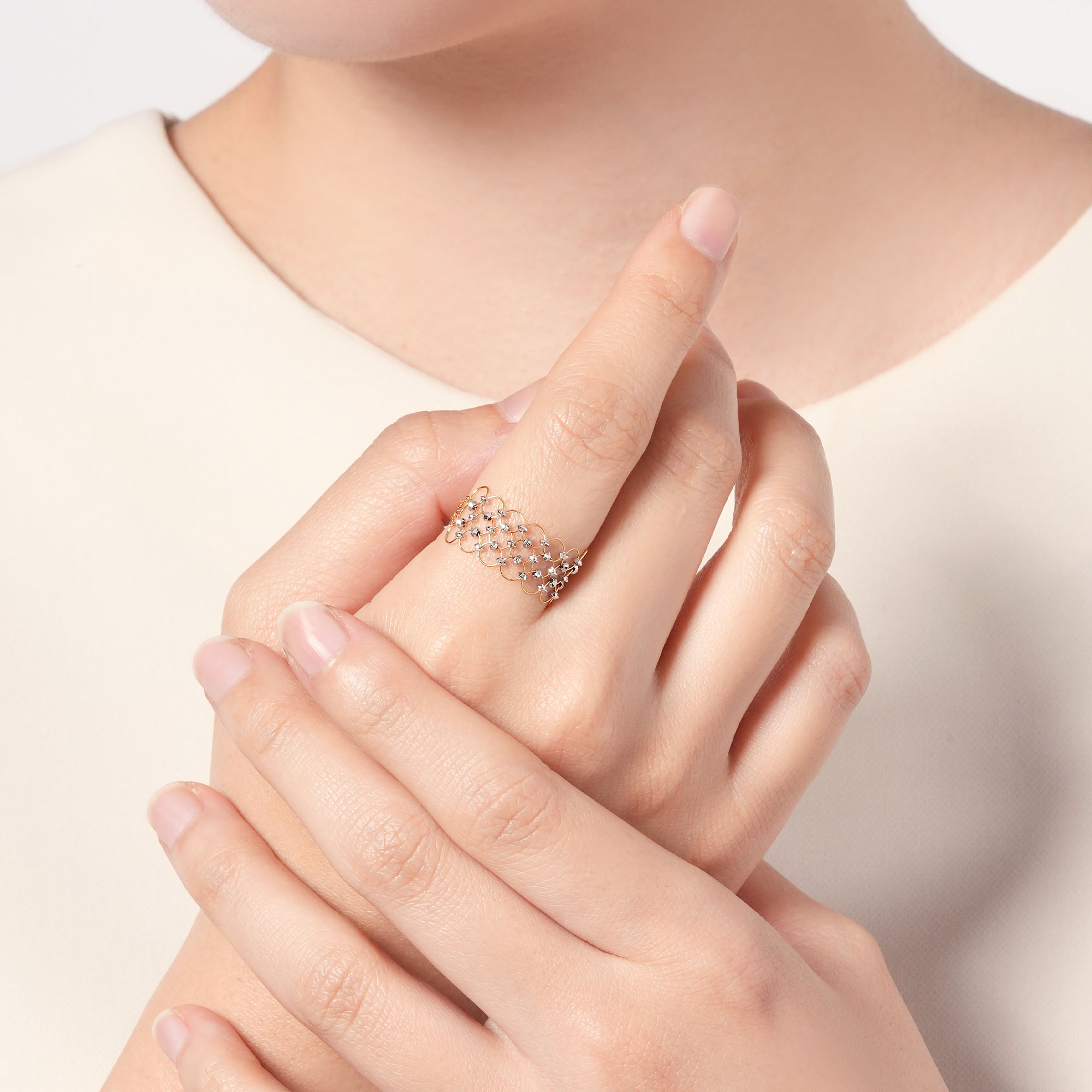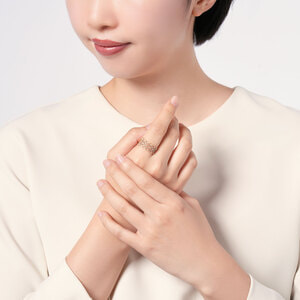 日本を代表する建築家 隈研吾氏と、デザイナー 大村真有美氏のデザインユニット。新感覚で身近なアート、ライフスタイルの実現に取り組む彼らとヴァンドーム青山のコレクションラインです。 東京都武蔵野市・ハモニカ横丁ミタカの廃材である自転車の車輪を使った、ユニークなファサードがデザインソース。 繊細な輪がリンクすることで「面」になる面白さを、ジュエリーで表現しました。 縦横につながったK10イエローゴールドの輪が、なめらかに動き、布のような表情を見せます。 ジョイント部分にはK10ホワイトゴールドのビーズをあしらい、輝きのアクセントに。 軽やかなチェーンリングが、手元に華やかさを添えます。 ▼シリーズアイテムはこちらKengo Kuma + MA,YU アイテム一覧