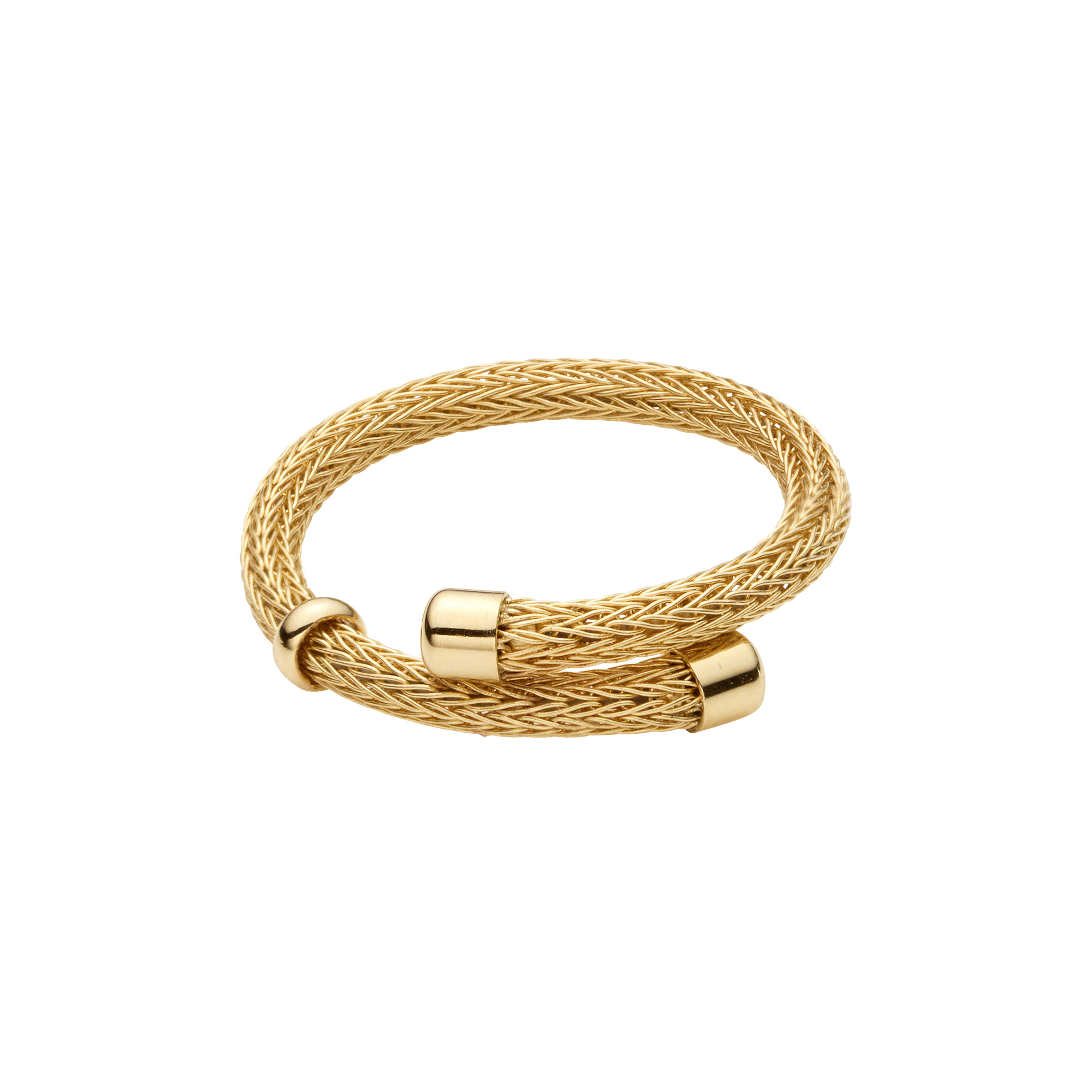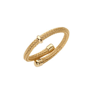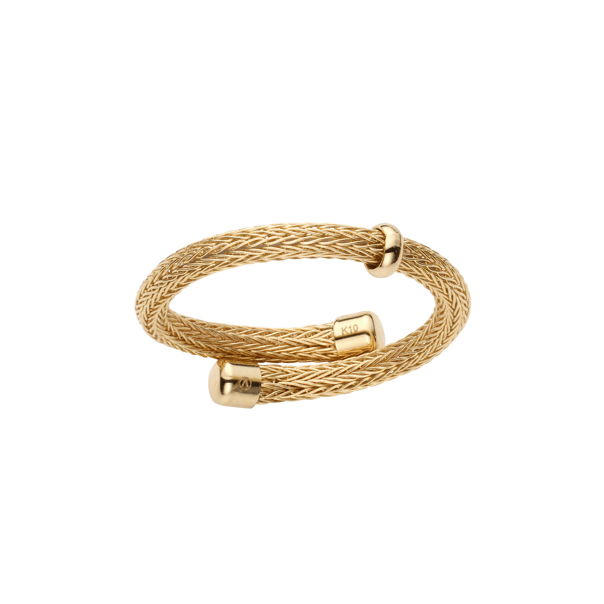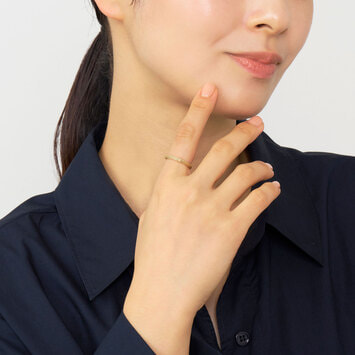 日本を代表する建築家 隈研吾氏と、デザイナー 大村真有美氏のデザインユニット。 新感覚で身近なアート、ライフスタイルの実現に取り組む彼らとヴァンドーム青山のコレクションラインです。 木板にレーザーカッターで切込みを入れることで蛇のような柔軟性を持たせたパビリオン「Uro-Co」がデザインソース。 K10イエローゴールドで作られたしなやかなチューブを、形状記憶の技術をつかってジュエリーに仕立てました。 丸いチューブ状のリングは、軽く柔軟性があり、ぴったりと指にフィットします。 フリーサイズ(着用感:約11〜13号)で、お好きな指にお着けいただけるフレキシブルさも魅力です。 鱗のような編みのテクスチャーは、金属でありながら生地のようなさらりとした肌触り。 控えめなツヤがヴィンテージのような、こなれた雰囲気を演出してくれます。 さらに、ポイントであしらわれたリング状のパーツがきらりと光るアクセントになっています。 ▼シリーズアイテムはこちらUro-Co シリーズKengo Kuma + MA,YU アイテム一覧