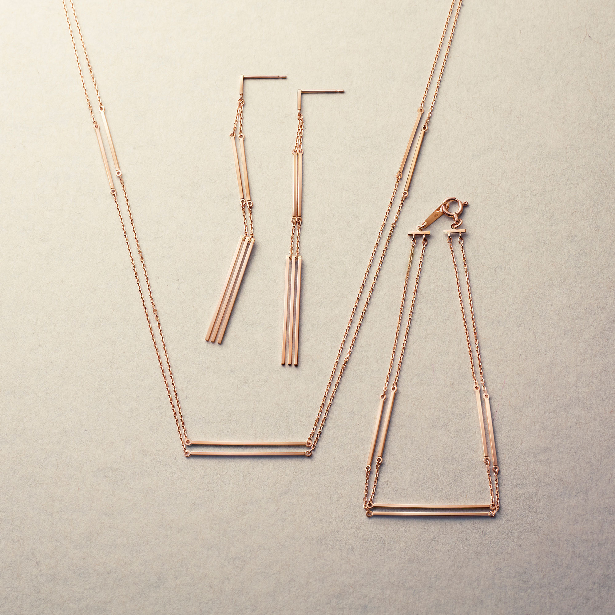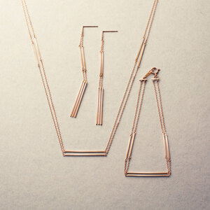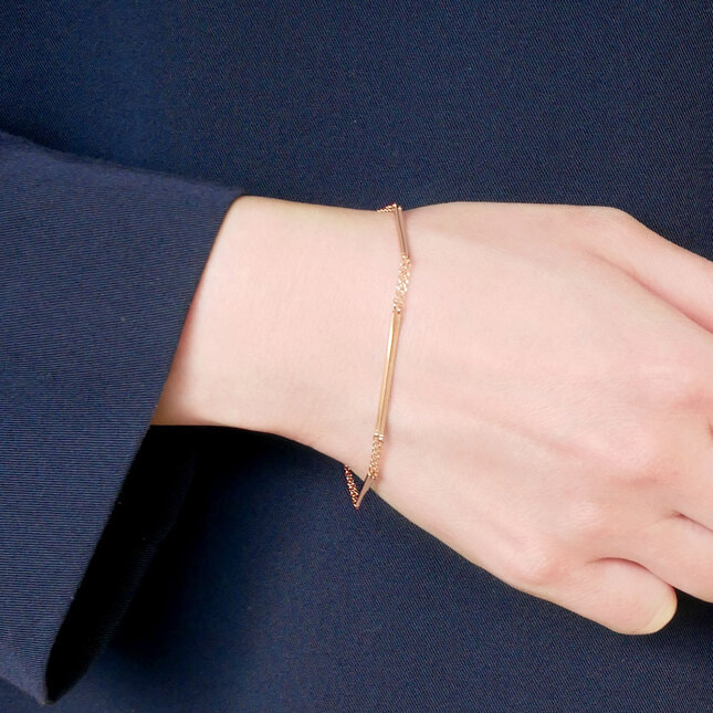 日本を代表する建築家 隈研吾氏と、デザイナー 大村真有美氏のデザインユニット。 新感覚で身近なアート、ライフスタイルの実現に取り組む彼らとヴァンドーム青山のコレクションラインです。 トルコの古都、エスキシェヒルに建つ「オドゥンパザル近代美術館」がデザインソース。 隈建築の代表的なディティールであるルーバーをモダンなジュエリーに仕立てました。 ピンクゴールドのバーが2連に連なるスタイリッシュなデザイン。 シンプルながらも存在感のある地金のツヤが手元に華やかさを添えます。 ▼シリーズアイテムはこちらLouver シリーズKengo Kuma + MA, YU アイテム一覧