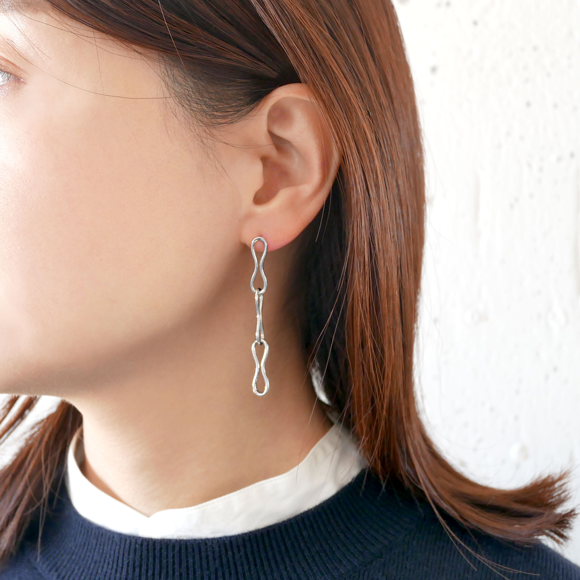 日本を代表する建築家 隈研吾氏と、デザイナー 大村真有美氏のデザインユニット。新感覚で身近なアート、ライフスタイルの実現に取り組む彼らとヴァンドーム青山のコレクションラインです。 ベトナム・ホーチミンに建てられたレジデンス「Waterina Suites」がデザインソース。 近くを流れるサイゴン川の川面のゆらぎにヒントを得た規則的なカーブを、グラフィカルなピアスに仕立てました。 8の字にも似たパーツを1つずつ繋げた、揺れるデザイン。 シルバーらしいボリュームとぬけ感で、顔まわりに存在感を与えてくれます。 ▼シリーズアイテムはこちらwave シリーズKengo Kuma + MA,YU アイテム一覧