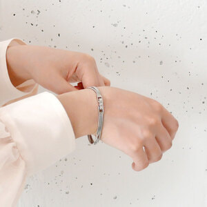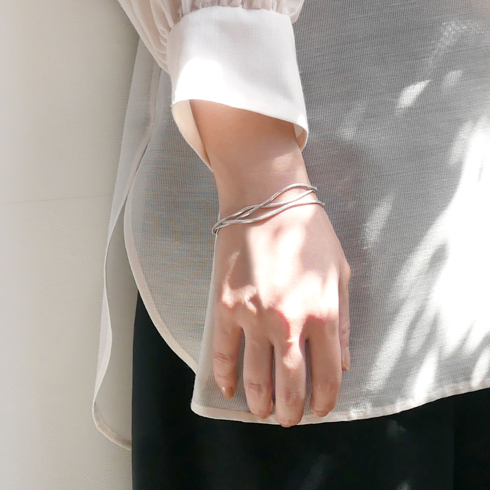 日本を代表する建築家 隈研吾氏と、デザイナー 大村真有美氏のデザインユニット。 新感覚で身近なアート、ライフスタイルの実現に取り組む彼らとヴァンドーム青山のコレクションラインです。 隈建築のアーチをデザインソースにした「Arch」シリーズ。 角スネークチェーンを3連にまとめたブレスレット。 金具の部分もブレスレットの幅に合わせてすっきりとデザインしています。 チェーンをあえてねじってからまとめることで、着けた時にランダムな表情が生まれるように作られています。 程良いボリューム感があり、コーディネートのプラスアイテムとして活躍するおすすめブレスレットです。 ▼シリーズアイテムはこちらArch シリーズKengo Kuma + MA, YU アイテム一覧