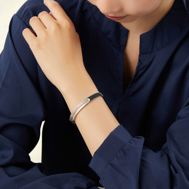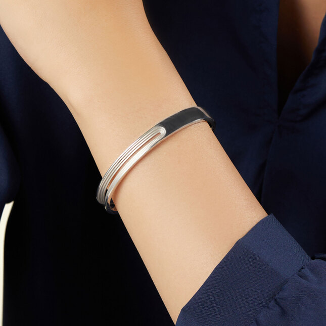 日本を代表する建築家 隈研吾氏と、デザイナー 大村真有美氏のデザインユニット。 新感覚で身近なアート、ライフスタイルの実現に取り組む彼らとヴァンドーム青山のコレクションラインです。 隈建築のアーチをデザインソースにした「Arch」シリーズ。 重厚でありながらグラフィカルなアーチを、シルバーで表現しました。 岩肌の風合いが残ったようなマットなテクスチャーと、磨き上げた部分のコントラストが、シルバーに表情を添えます。 建築そのもののような大胆なデザインのバングル。 一見シンプルなデザインの中に、グラフィカルな模様のように見えるアーチがスタイリッシュな手元を演出します。 ▼シリーズアイテムはこちらArch シリーズKengo Kuma + MA, YU アイテム一覧