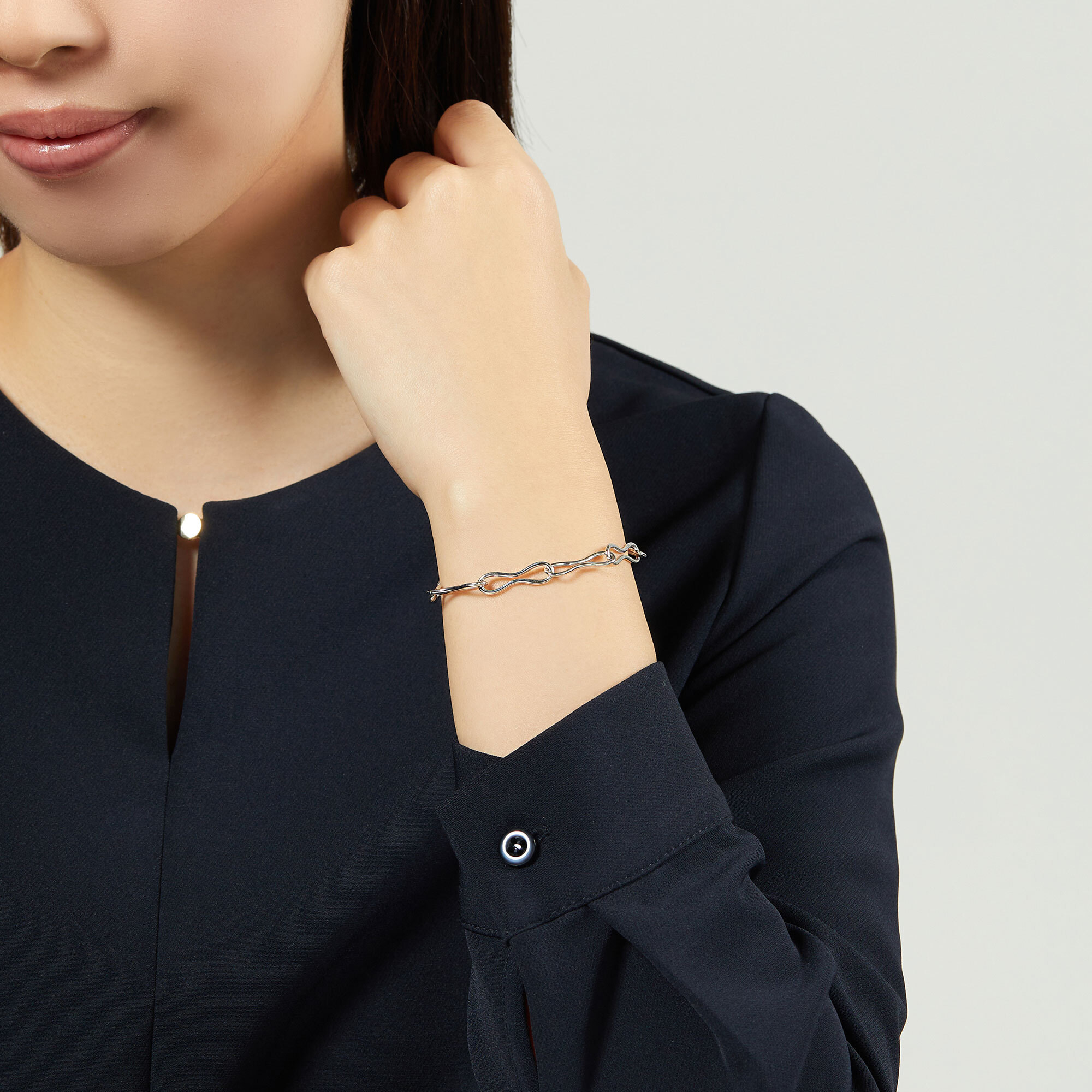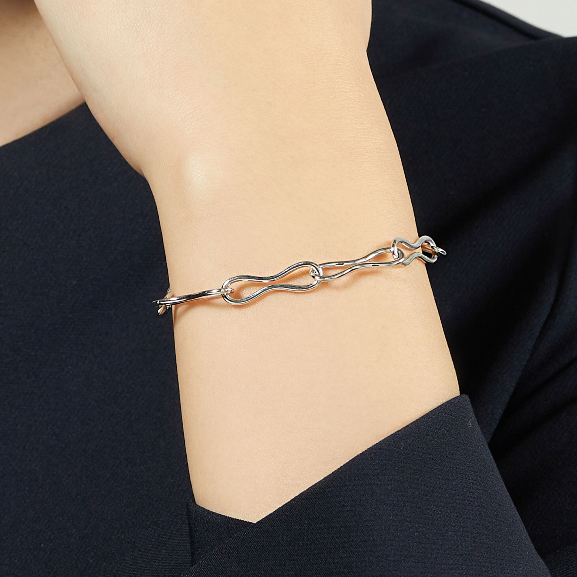 日本を代表する建築家 隈研吾氏と、デザイナー 大村真有美氏のデザインユニット。 新感覚で身近なアート、ライフスタイルの実現に取り組む彼らとヴァンドーム青山のコレクションラインです。 ベトナム・ホーチミンに建てられたレジデンス「Waterina Suites」がデザインソース。 近くを流れるサイゴン川の川面のゆらぎにヒントを得た規則的なカーブを、グラフィカルなネックレスに仕立てました。 8の字にも似たパーツを1つずつ繋げたブレスレットはシルバーらしいボリュームとぬけ感で、手元に存在感を与えてくれます。 ▼シリーズアイテムは こちらKengo Kuma + MA,YU アイテム一覧