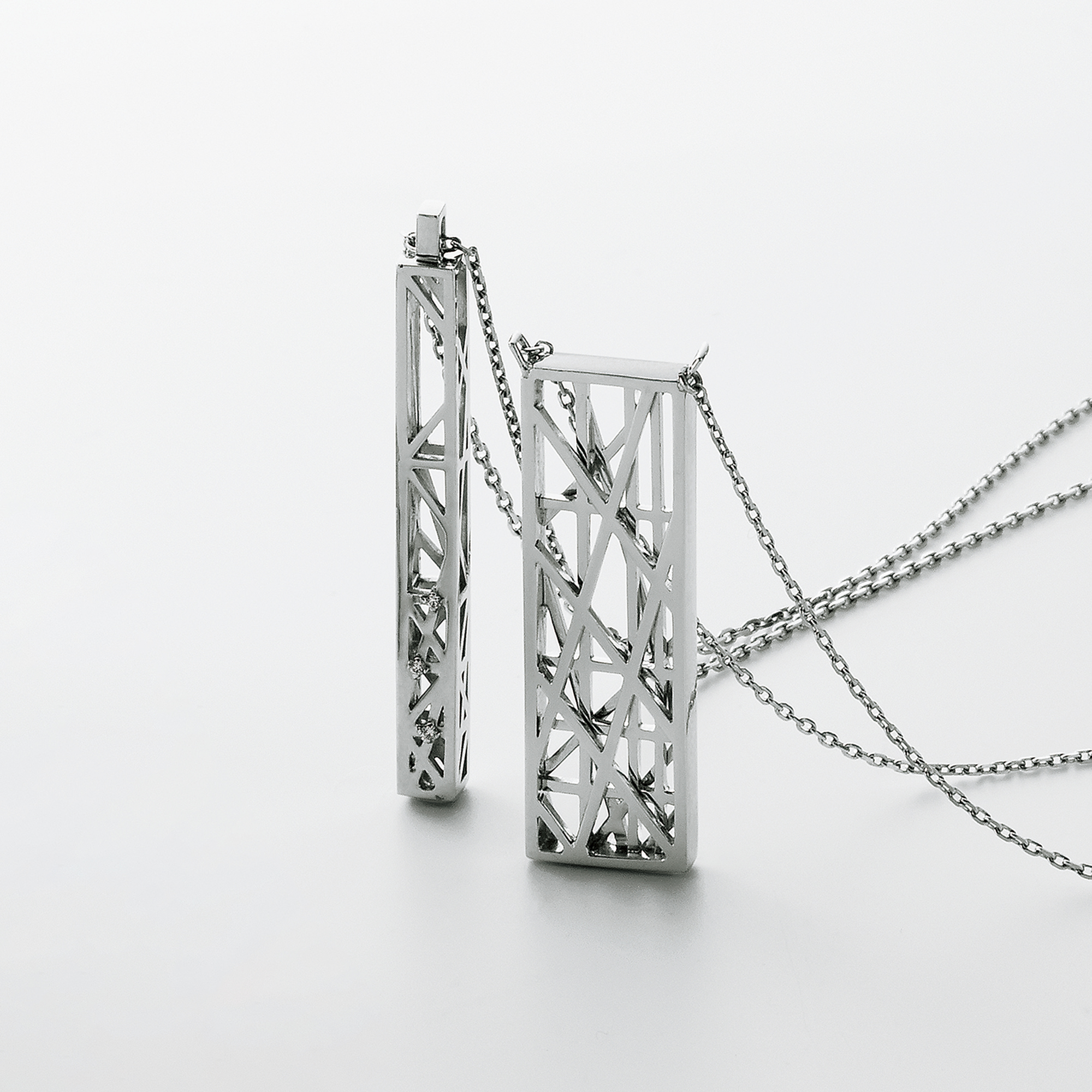日本を代表する建築家 隈研吾氏と、デザイナー 大村真有美氏のデザインユニット。新感覚で身近なアート、ライフスタイルの実現に取り組む彼らとヴァンドーム青山のコレクションラインです。 折り重ねられた三層の格子は紬をイメージした伝統と革新を感じさせるデザインです。 装いに凛とした印象をプラスするネックレスです。 ▼シリーズアイテムはこちらsou-an シリーズKengo Kuma + MA, YU アイテム一覧