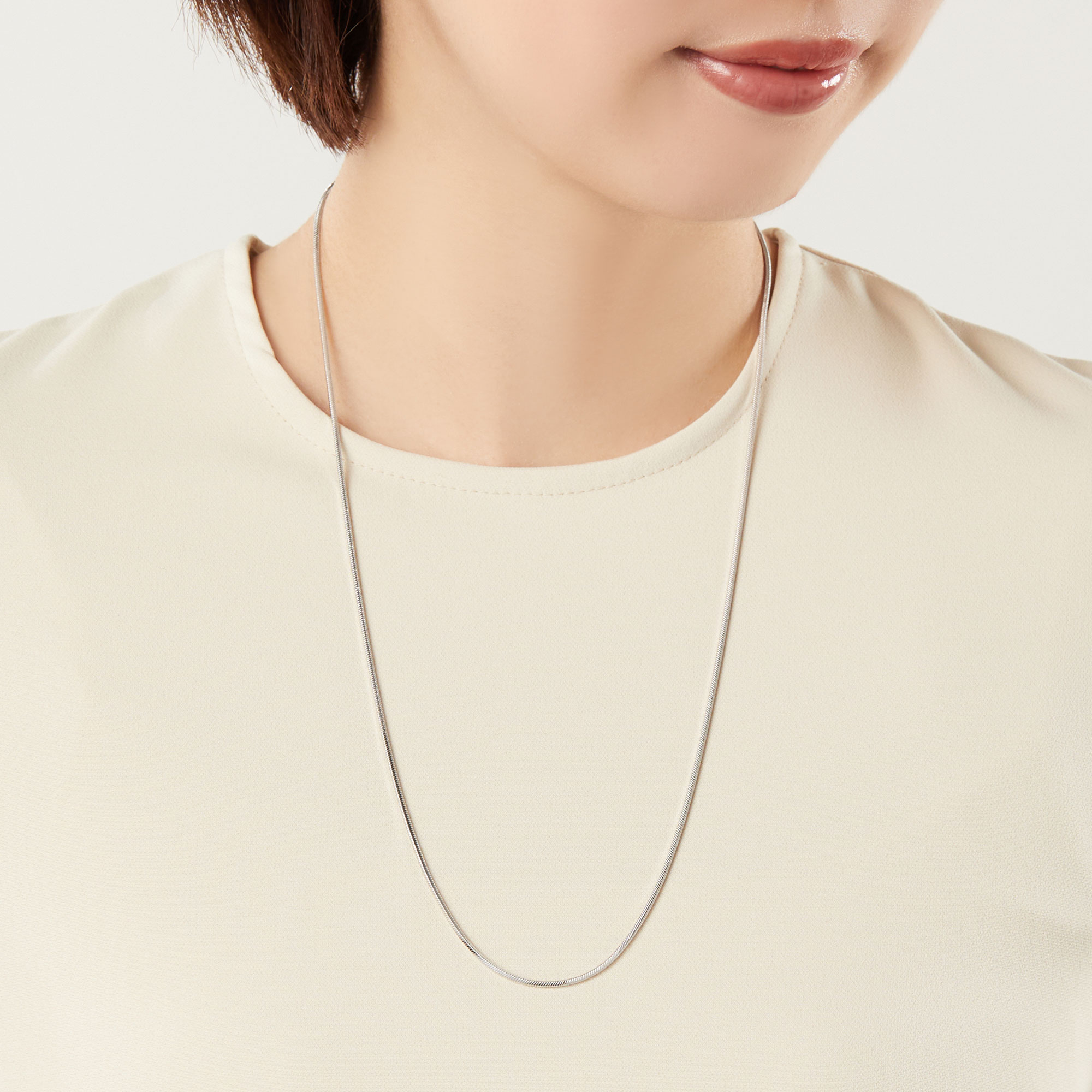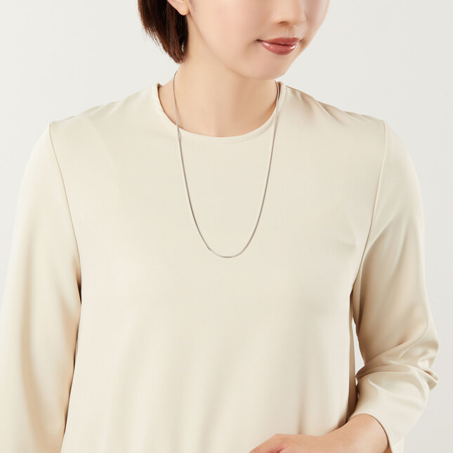 日本を代表する建築家 隈研吾氏と、デザイナー 大村真有美氏のデザインユニット。 新感覚で身近なアート、ライフスタイルの実現に取り組む彼らとヴァンドーム青山のコレクションラインです。 隈建築のアーチをデザインソースにした「Arch」シリーズ。 60cmの角スネークを使ったロングチェーンネックレス。 スネークチェーンは、たわんだ時のアーチのフォルムが美しく出るチェーンです。 程よいつや感とボリュームは、無地のお洋服はもちろん、柄物に合わせても負けない存在感があります。 ▼カラーバリエーションはこちらイエローゴールド / ピンクゴールドカラー ▼サイズバリエーションはこちらロングネックレス(全長:約90cm) ▼シリーズアイテムはこちらArch シリーズKengo Kuma + MA, YU アイテム一覧