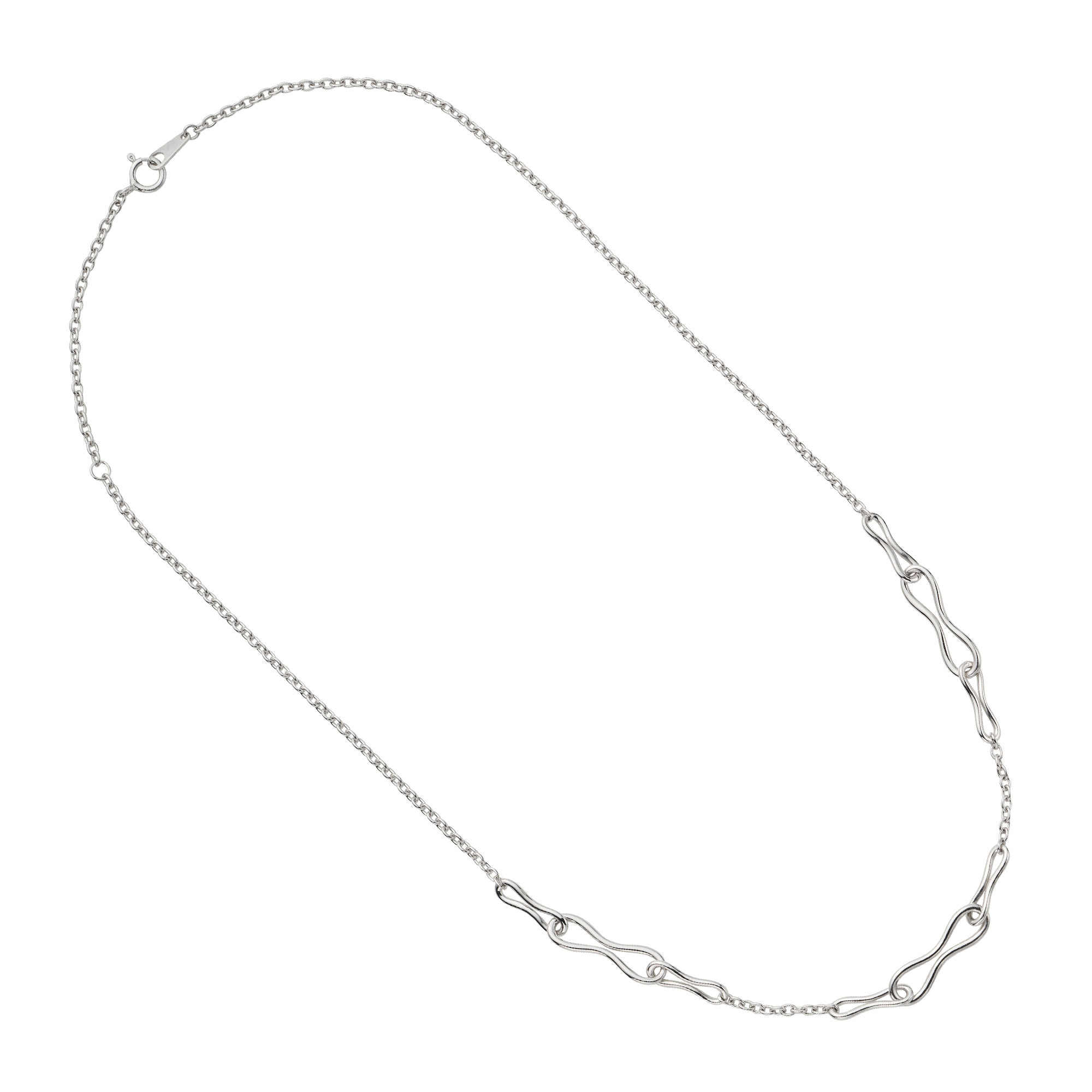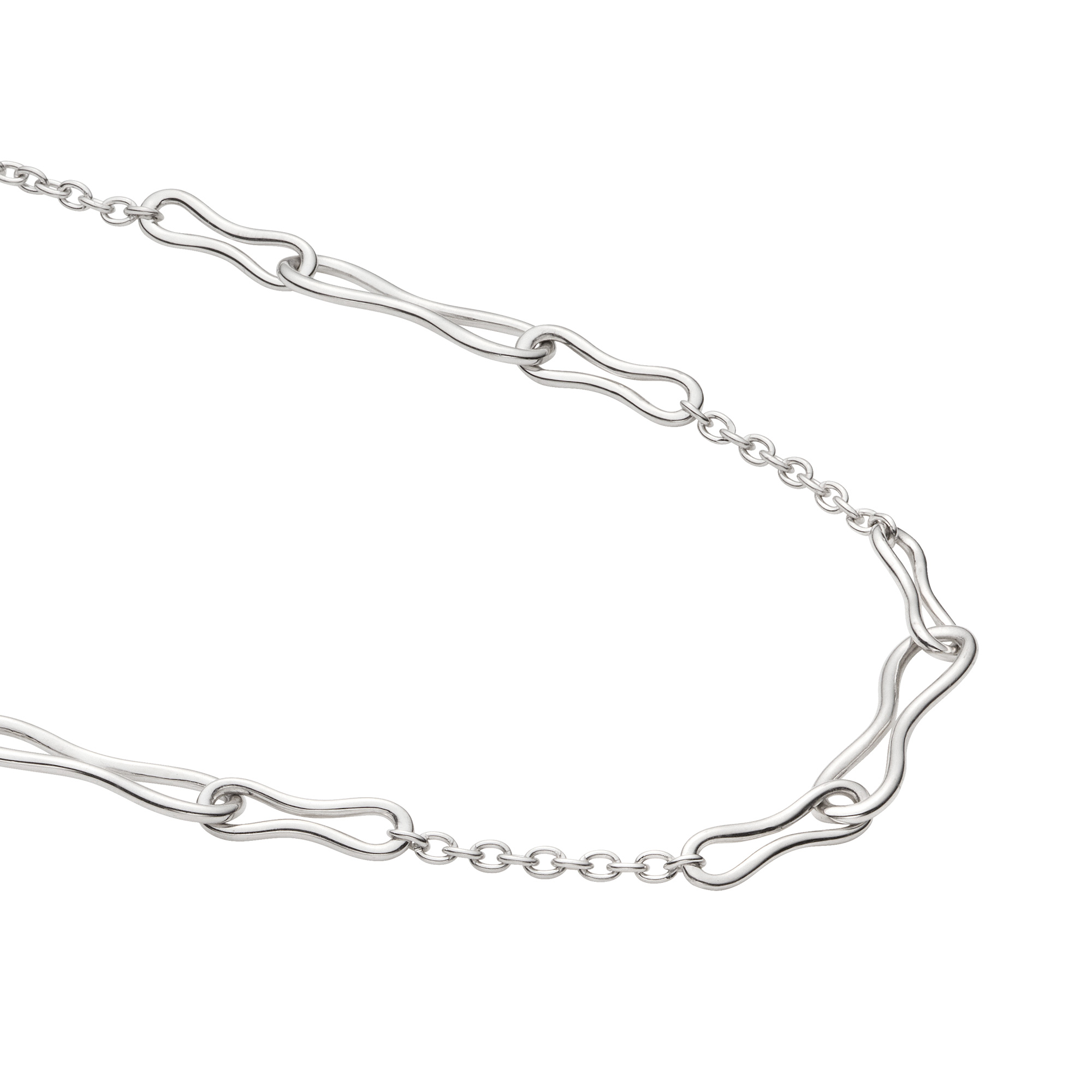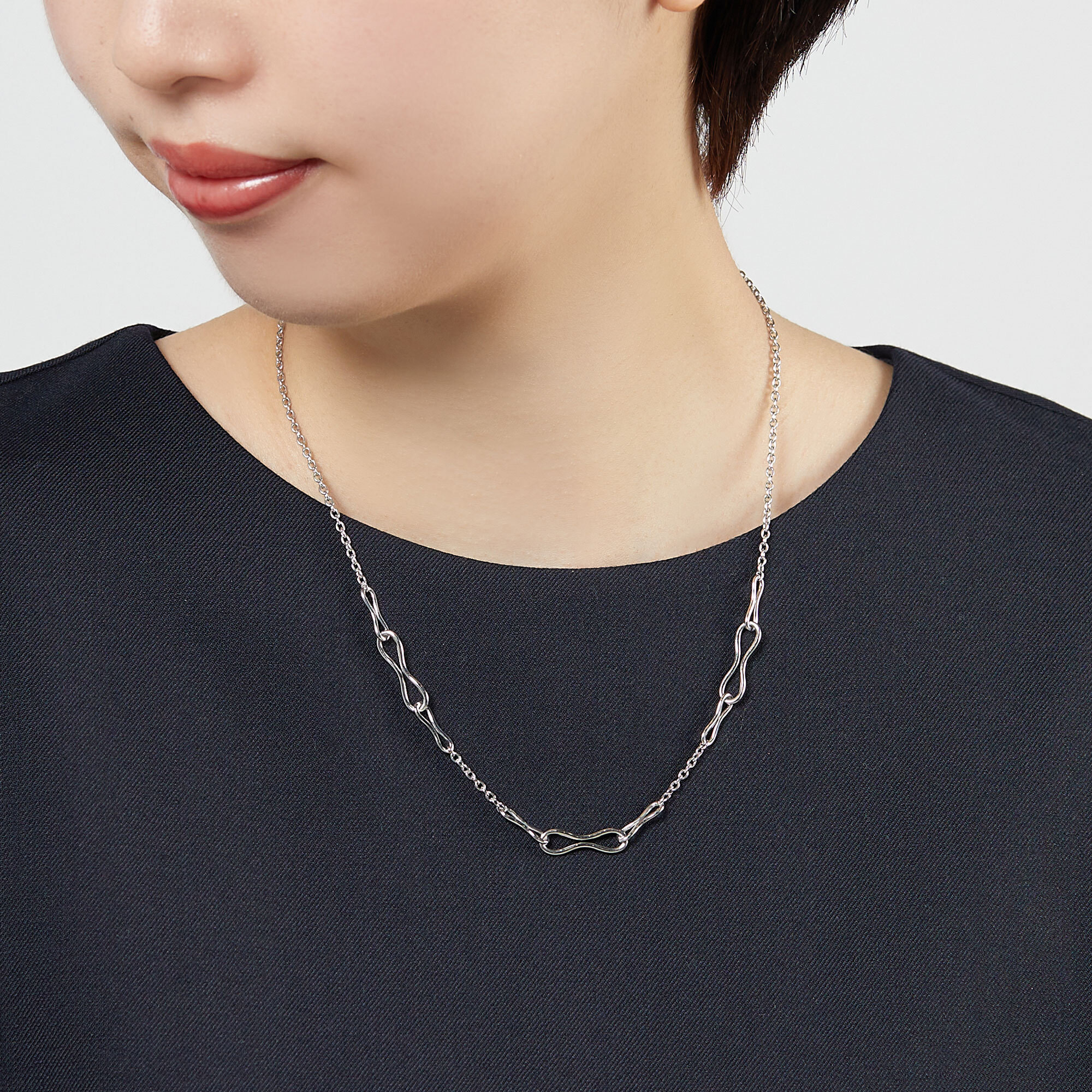 日本を代表する建築家 隈研吾氏と、デザイナー 大村真有美氏のデザインユニット。新感覚で身近なアート、ライフスタイルの実現に取り組む彼らとヴァンドーム青山のコレクションラインです。 ベトナム・ホーチミンに建てられたレジデンス「Waterina Suites」がデザインソース。 近くを流れるサイゴン川の川面のゆらぎにヒントを得た規則的なカーブを、グラフィカルなチェーンネックレスに仕立てました。 8の字にも似たパーツとチェーンを1つずつ繋げたデザイン。 程よいボリュームとぬけ感で、装いをクラスアップしてくれます。 ▼シリーズアイテムはこちらwave シリーズKengo Kuma + MA,YU アイテム一覧
